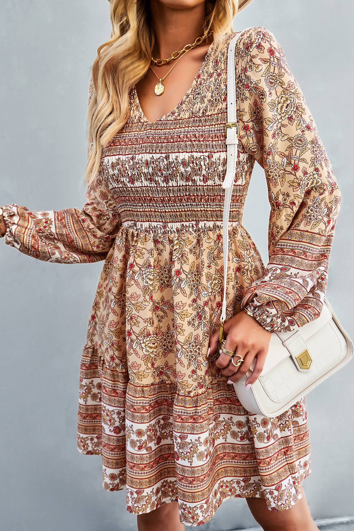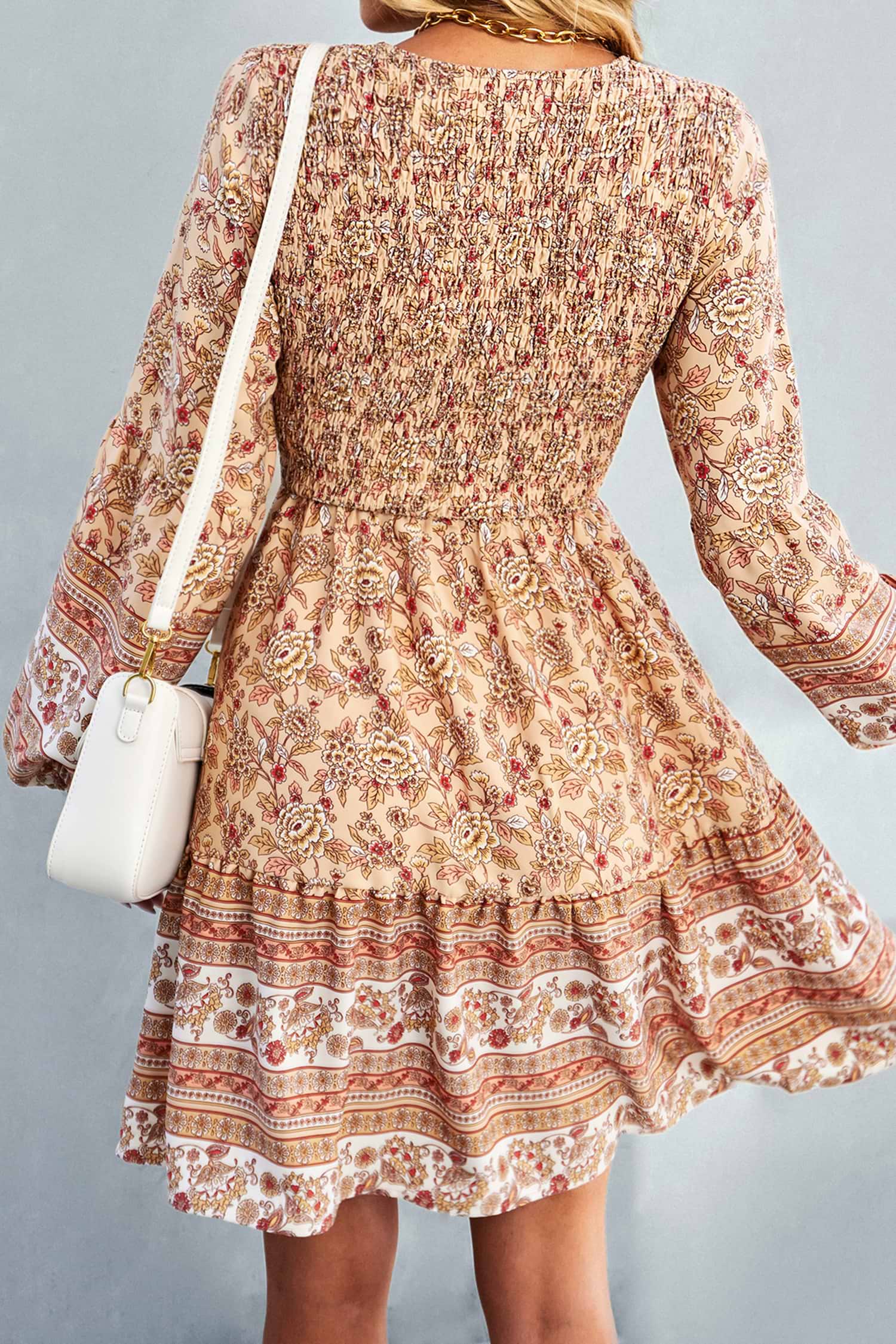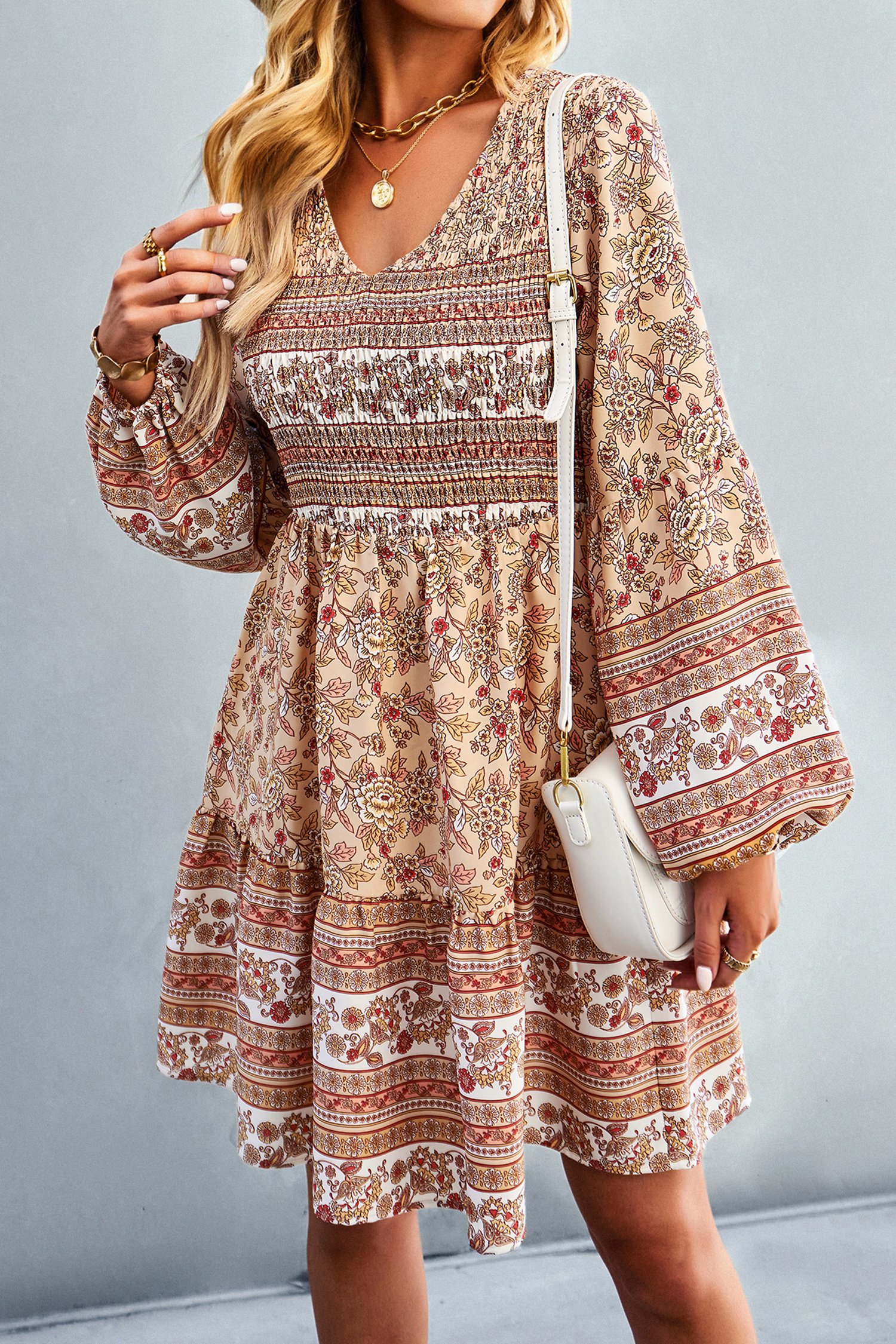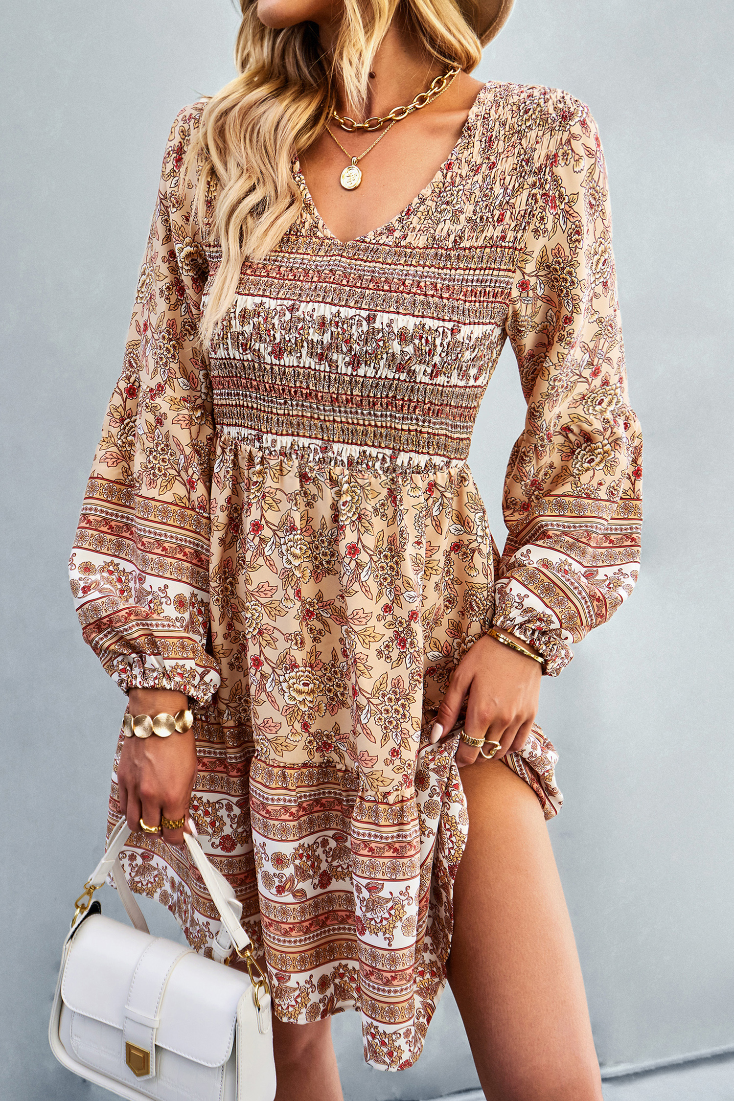 Aguas Blancas V-neck Bubble Sleeve Midi Dress