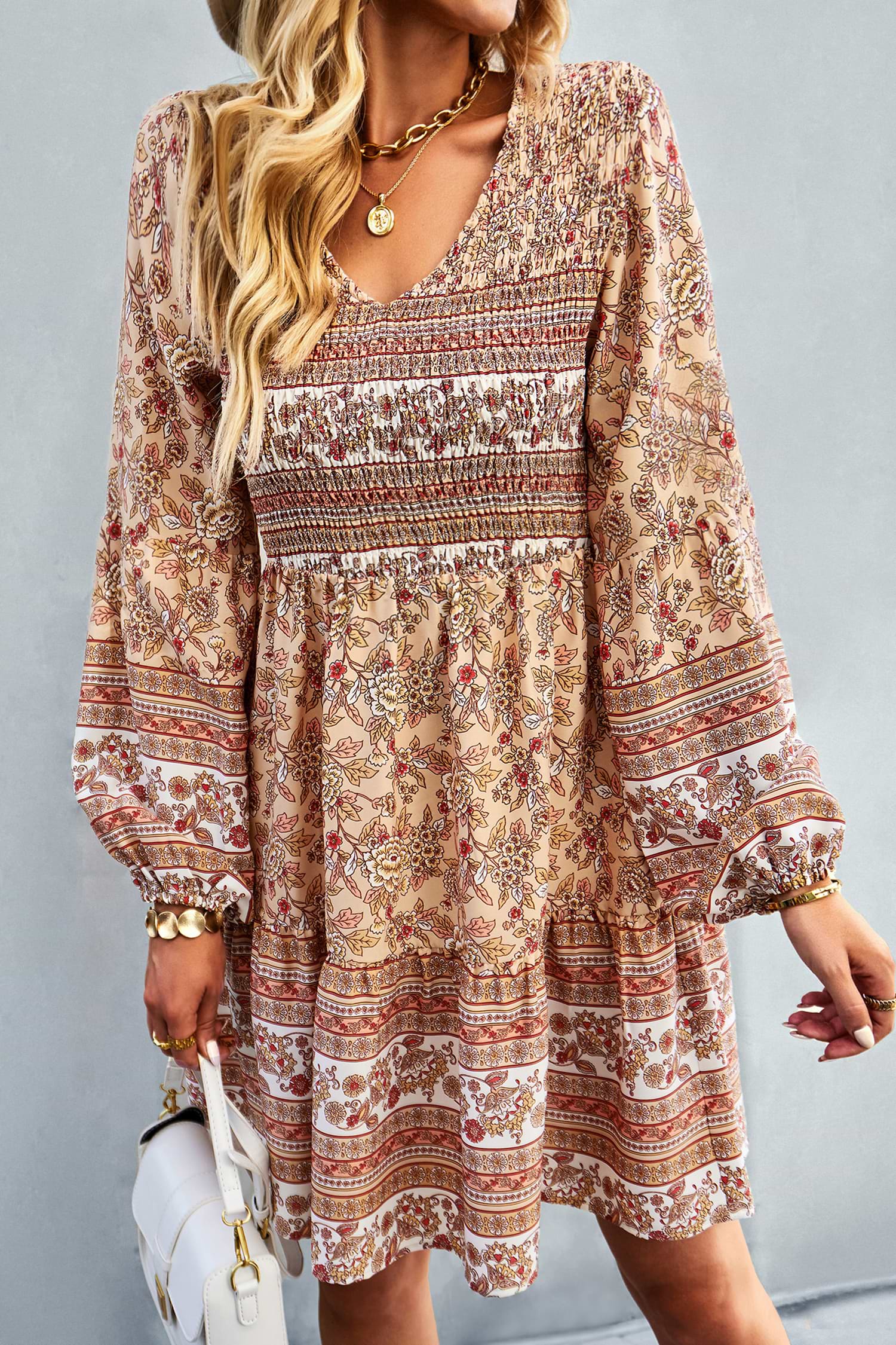 HomeAguas Blancas V-neck Bubble Sleeve Midi Dress