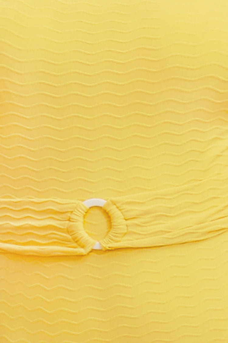 Texture Belted Ring Square Neck One Piece Swimsuit-Yellow
