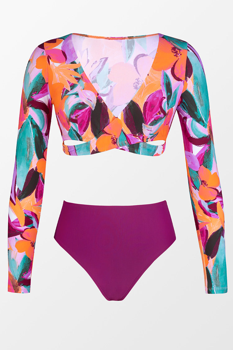HomeFlower Wrap Long Sleeve & Classic High Waist Set