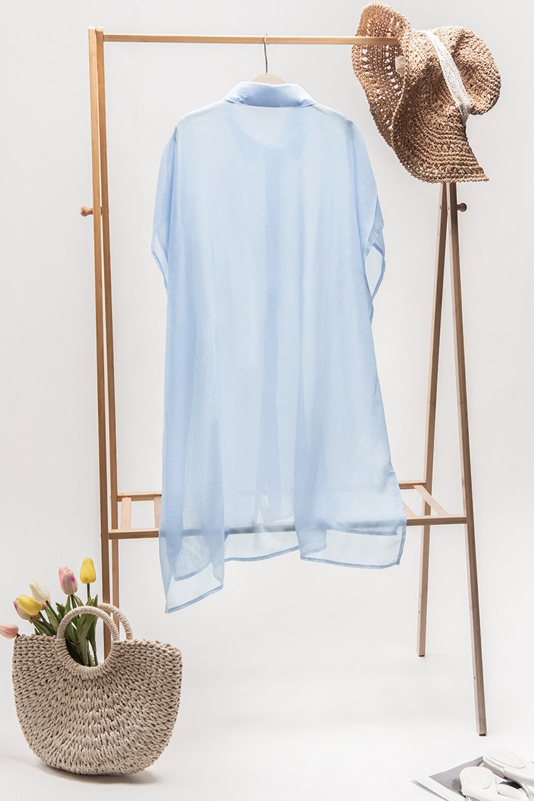 Ashtyn Blue Sheer Button-up Shirt Kimono