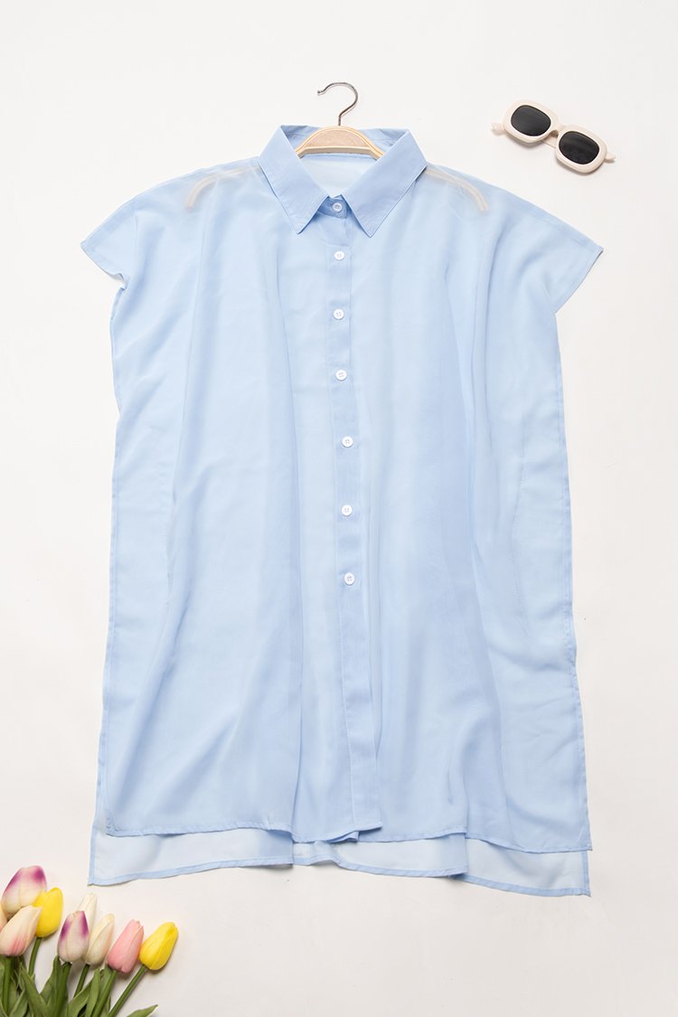 HomeAshtyn Blue Sheer Button-up Shirt Kimono