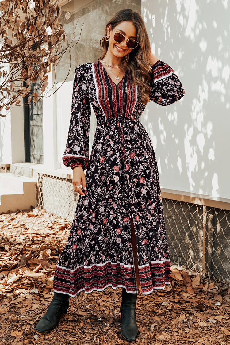 HomeAvila Paisley Floral Long Sleeve Maxi Dress