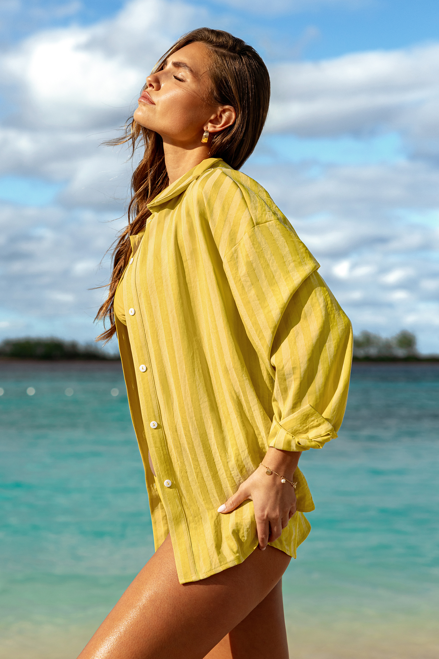 The Hidden in Paradise Blouse is a bright, easygoing piece for sunny days! The collared neckline and long sleeves keep it classic, while the pop of color adds a playful look.