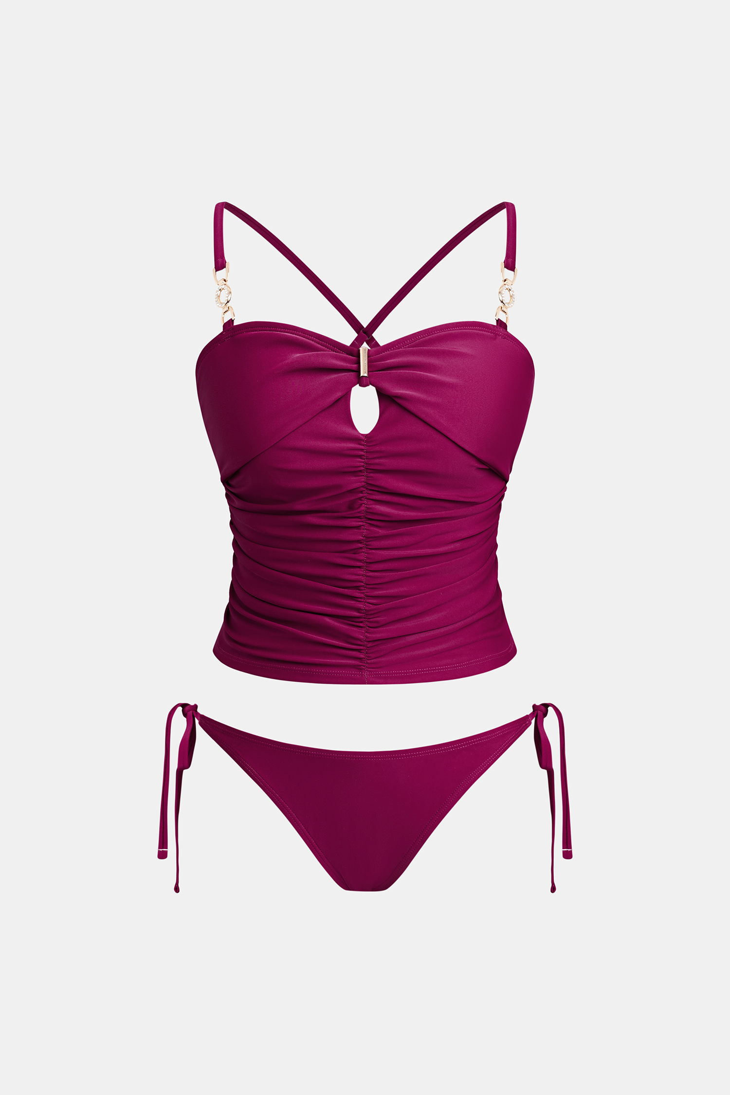 Channel laid-back island vibes with the Sand Muse Red Tankini Set! The sweetheart neckline with crossback straps give light bust support, while the low-rise fit and mid leg cut keep it flirty, playful, and perfect for beachside strolls.
