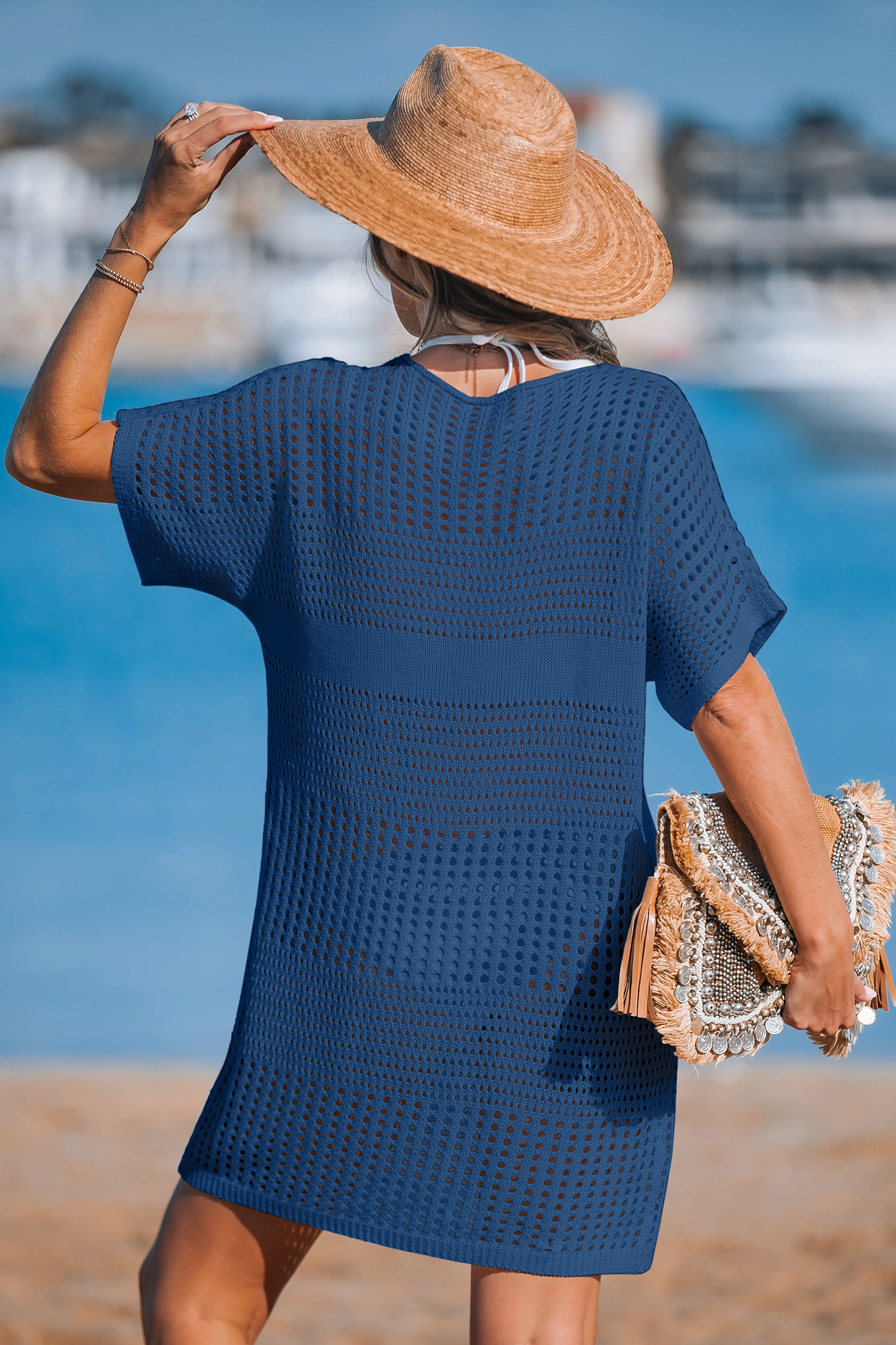 The Beach Essential Blue Cover-Up Mini Dress is your go-to for sunny days! With a relaxed v-neckline, and short sleeves, this knit mini is effortless and breezy for any beachside adventure.