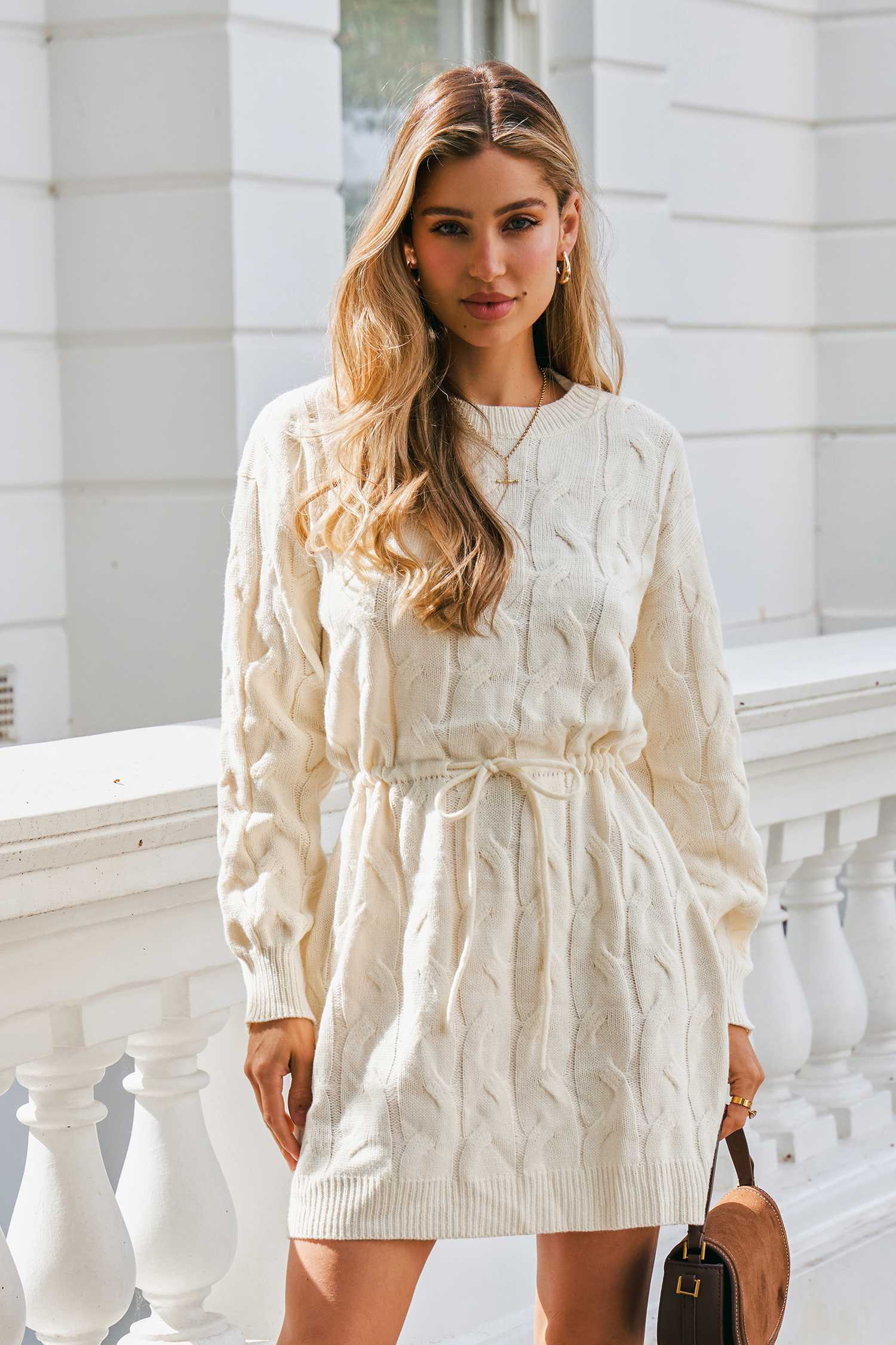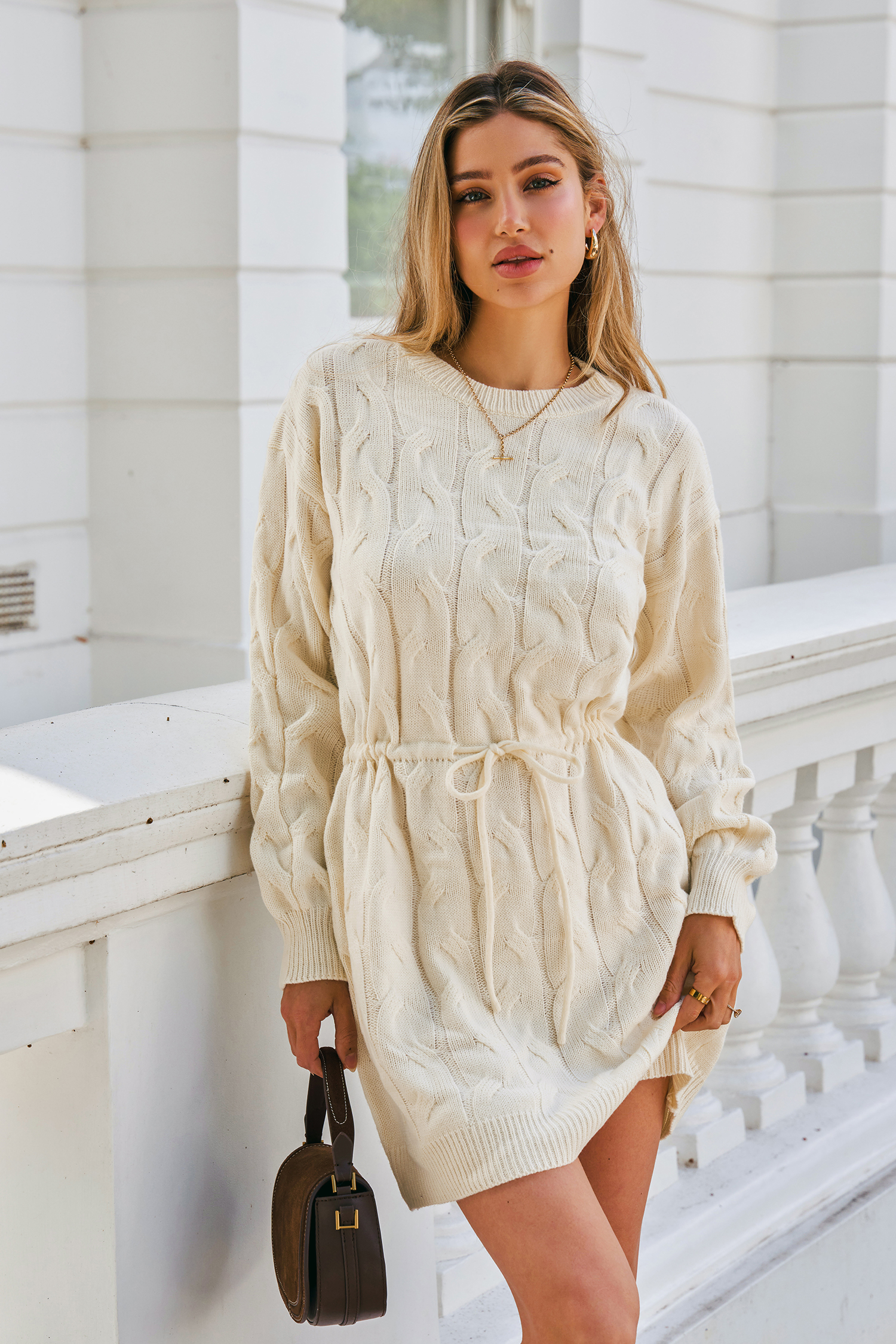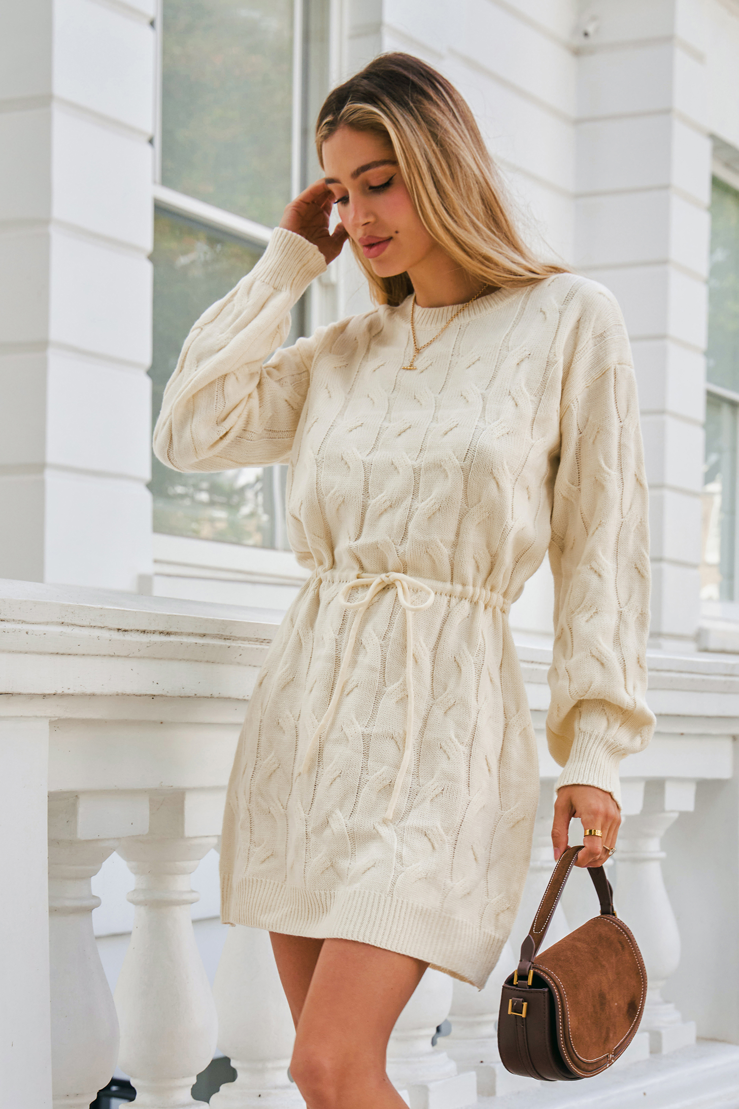 HomeBeige Long Sleeve Ribbed Jumper Dress