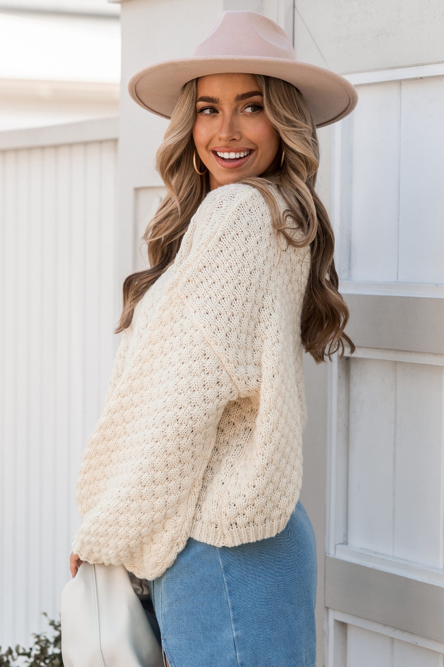 Ivory Off-Shoulder Puff Sleeve Jumper