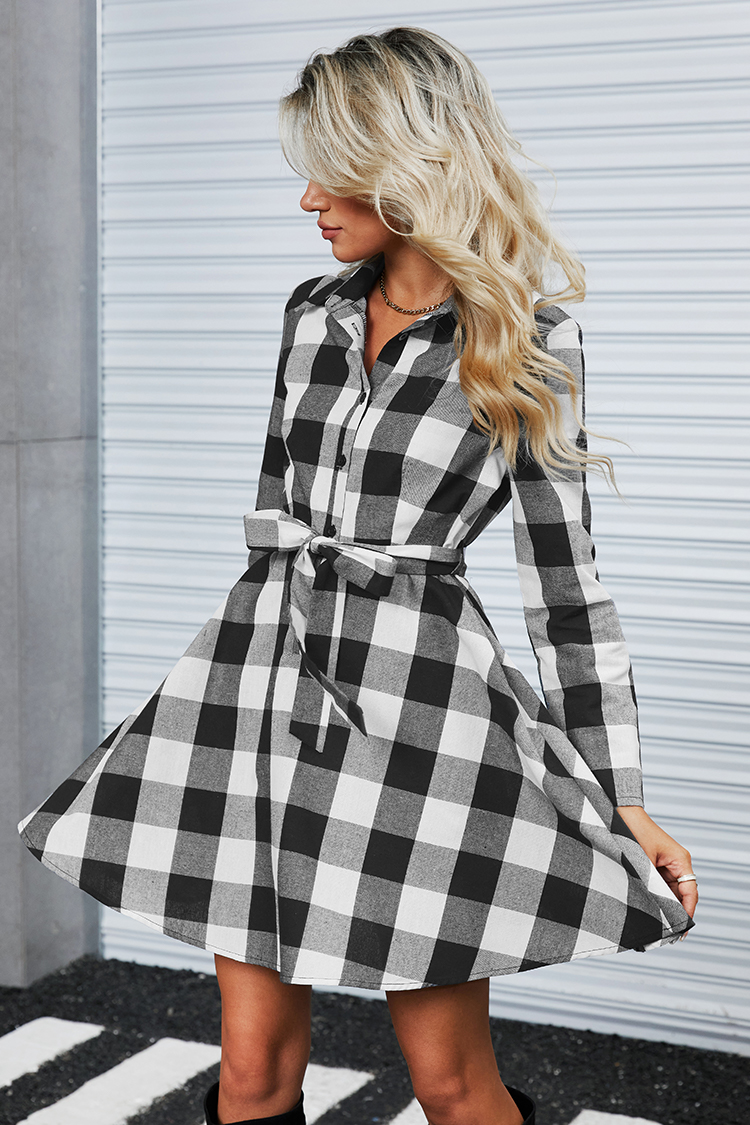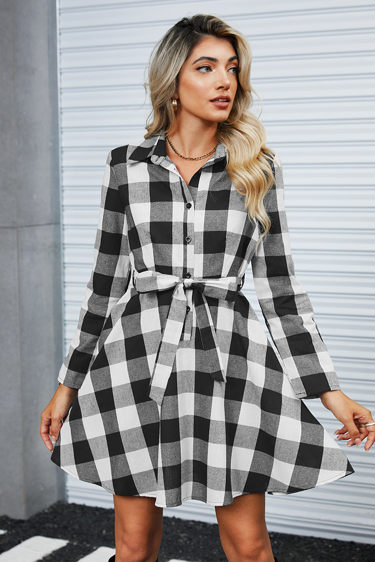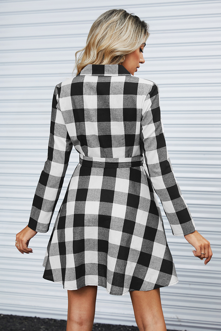 HomeOn Point Belted Buffalo Plaid Mini Dress