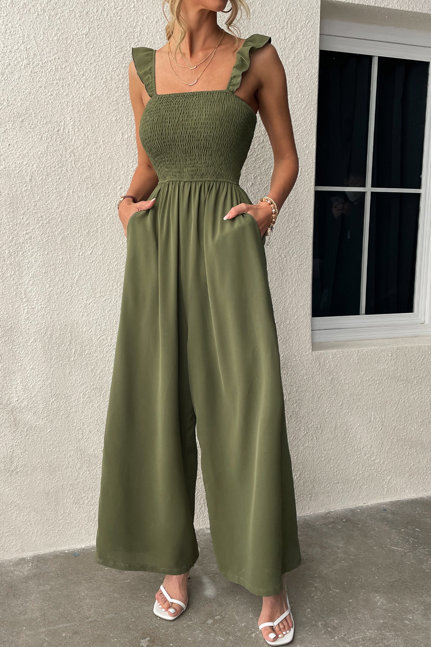HomeBertie Smocked Ruffled Playsuit