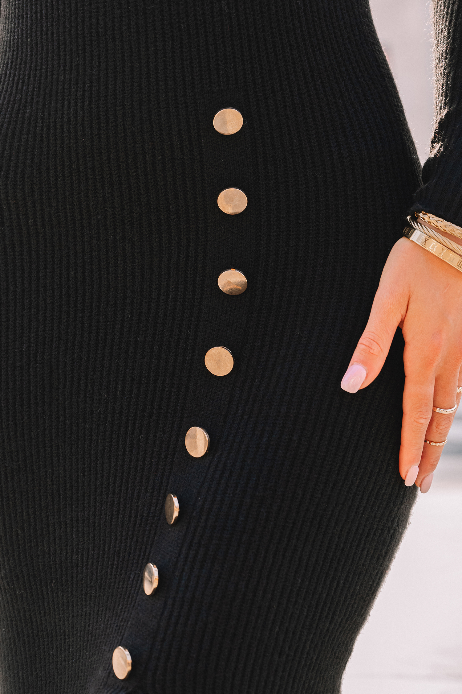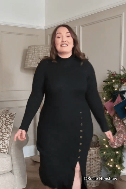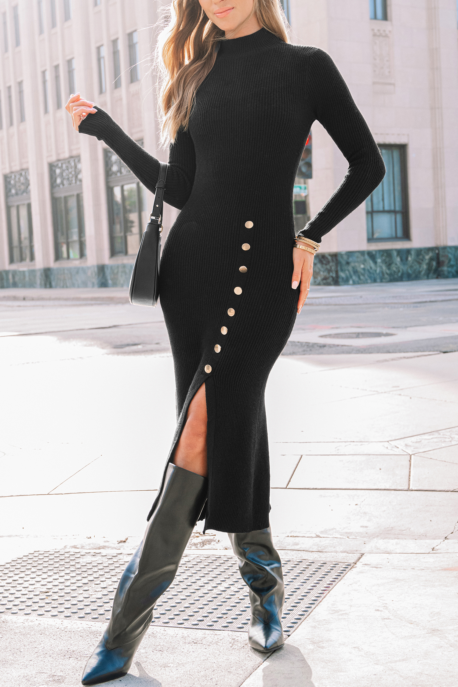 Black Mockneck Split Hem Midi Jumper Dress