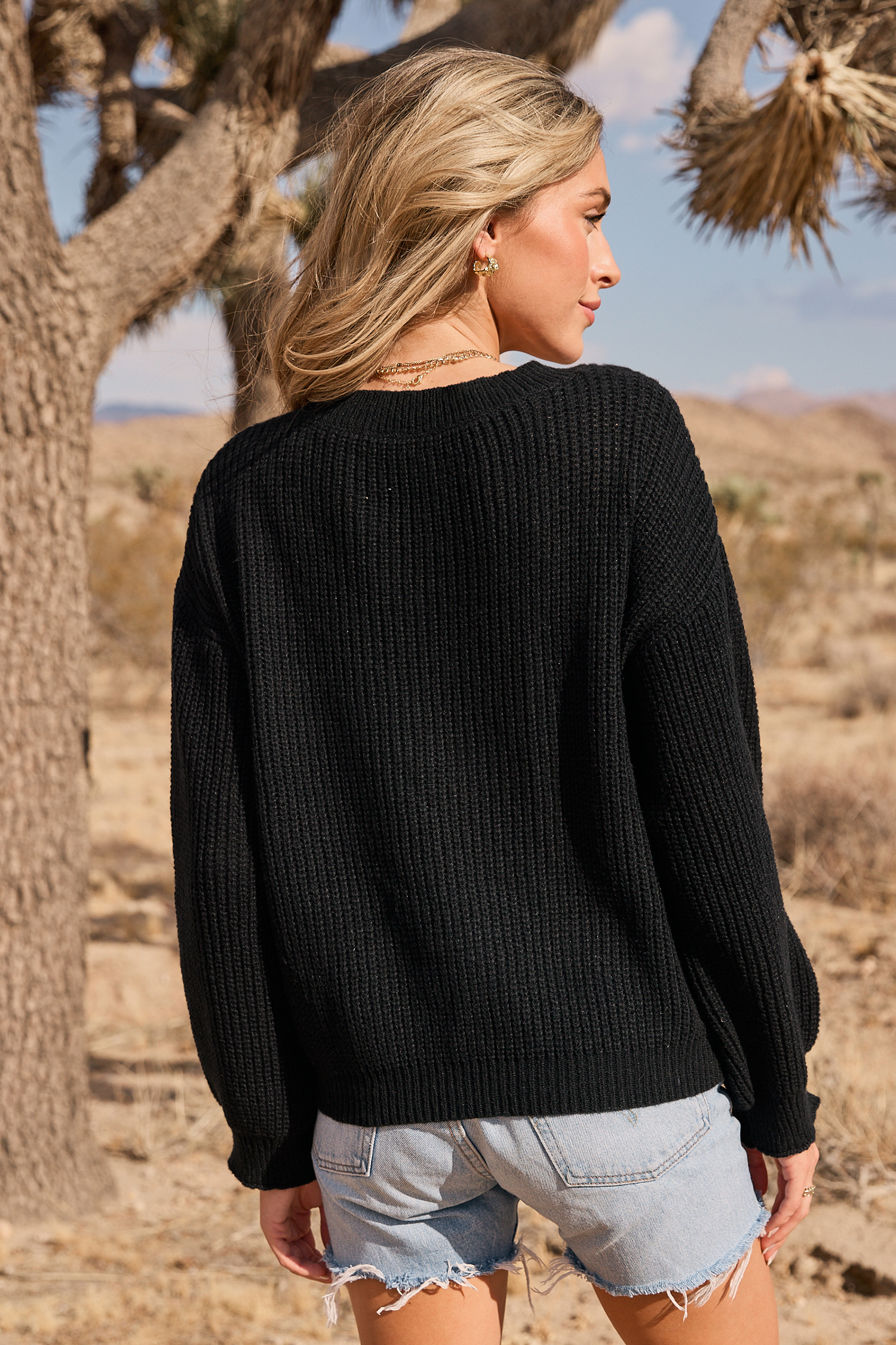 HomeBlack Sequins Bow Long Sleeve Knit Top