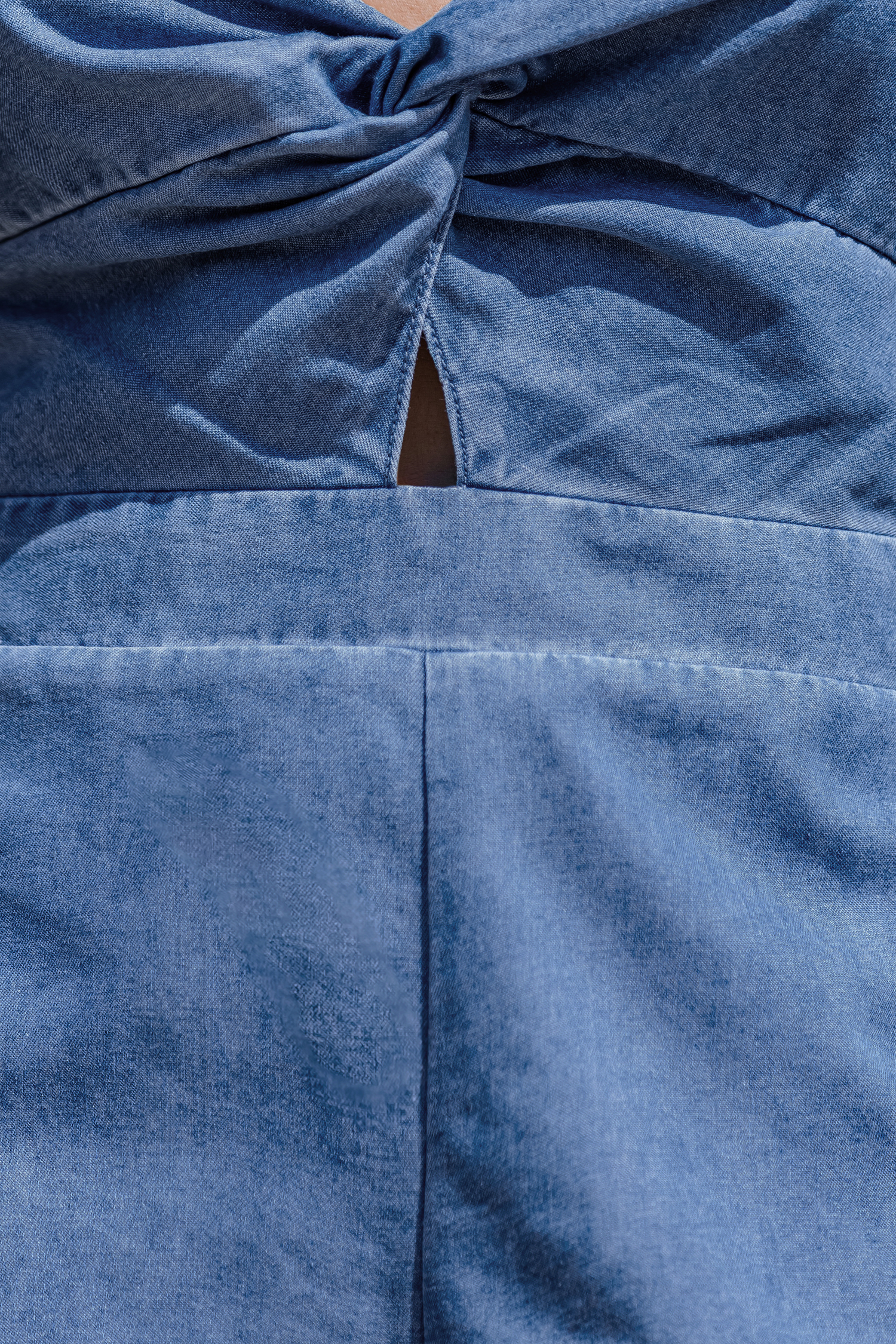 The Blue Skies Ahead Denim Romper is ready for sunny adventures and carefree days! With a V-neckline, knotted front, and flared leg, it’s a playful take on an easy warm-weather staple.