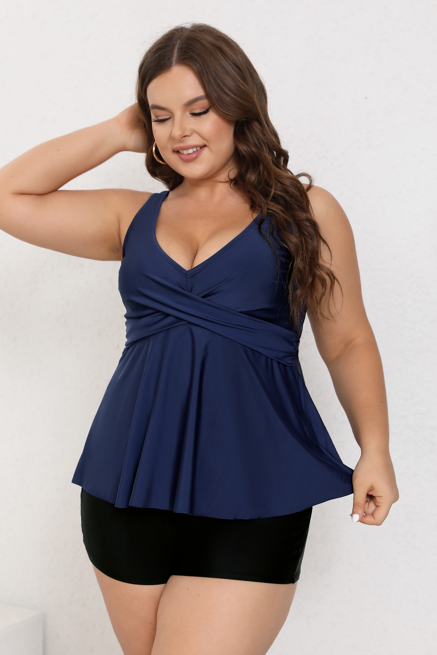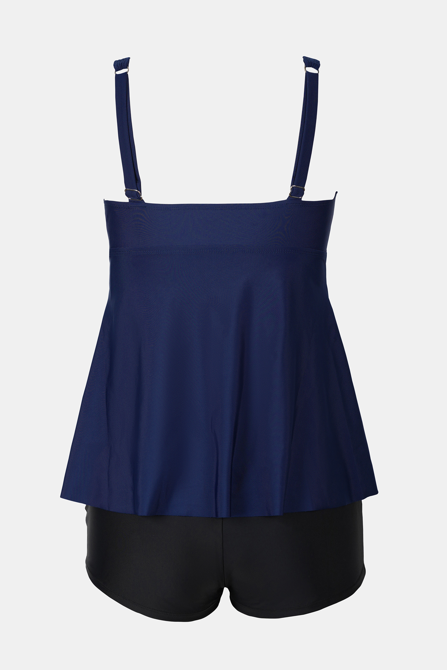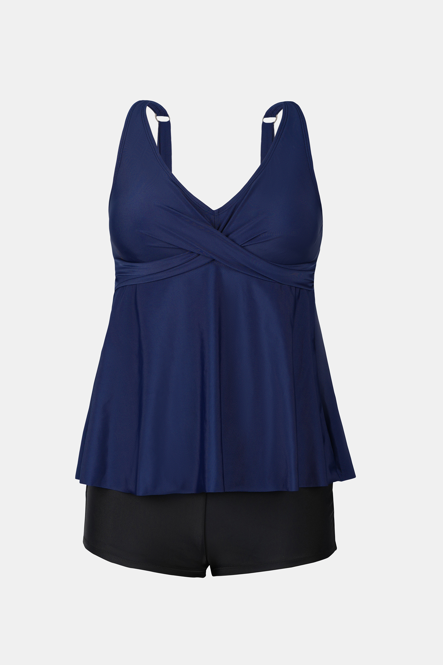HomeBlue Wrapped Tankini Top & Black High-Rise Boy Shorts Set
