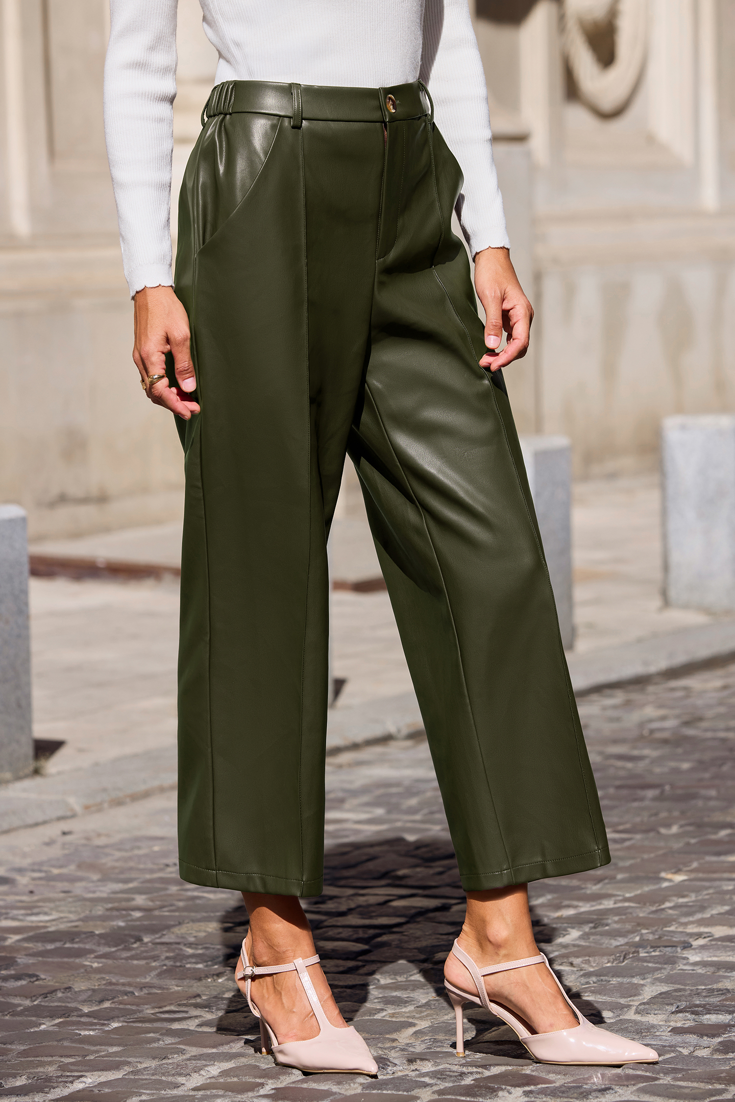 The Boheme Green Trousers were made for main-character moments! Crafted from faux leather with pockets and a straight leg cut, they bring cool girl energy to any outfit.