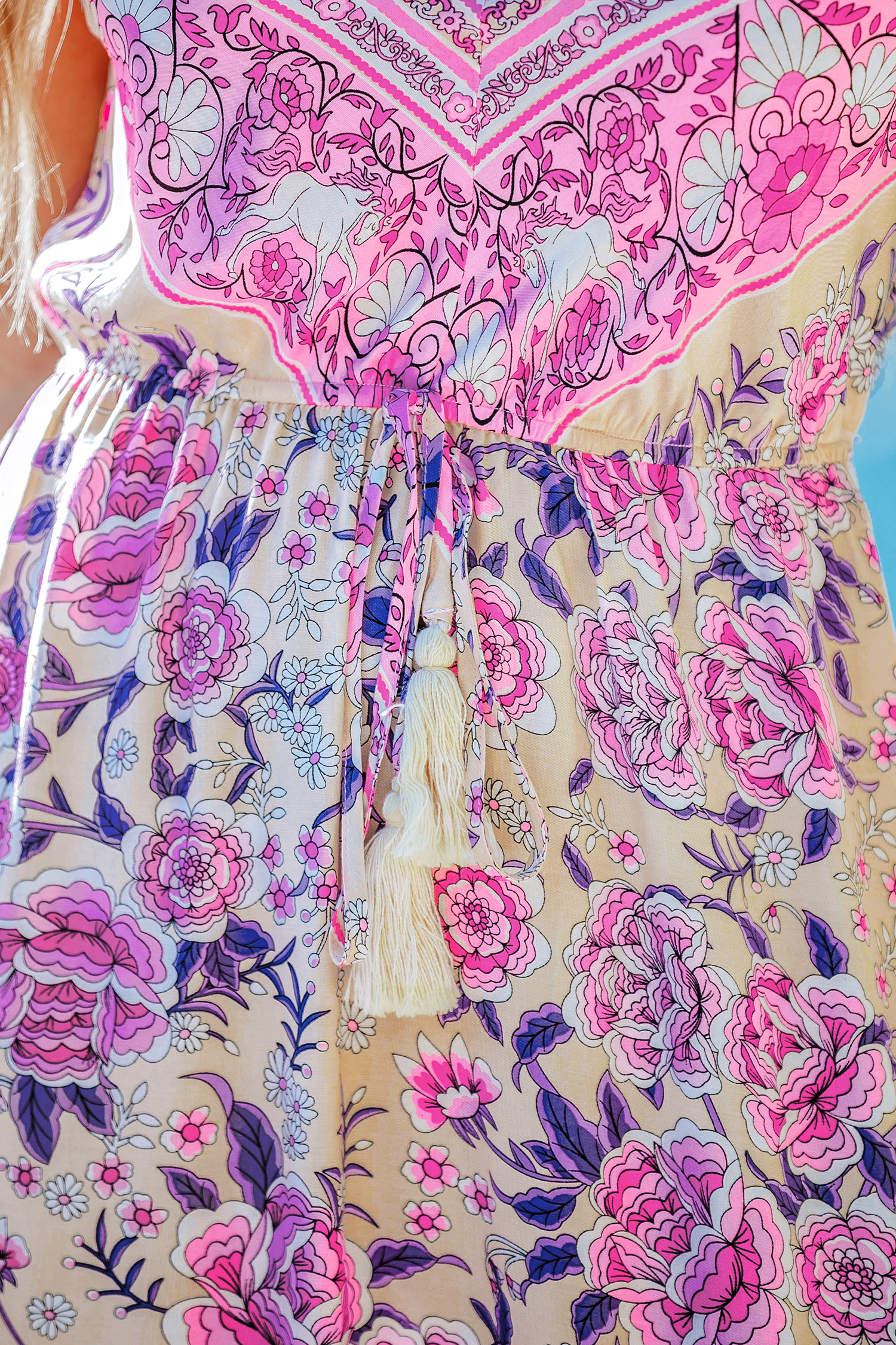 Say hello to easy elegance with the Boho Blossoms V-Neck Midi Dress! Featuring a flattering V-neckline, delicate cami straps, and a tassel waist tie, this midi dress offers a perfect blend of comfort and style. The soft, flowing silhouette is ideal for any occasion, adding a touch of charm to your look.