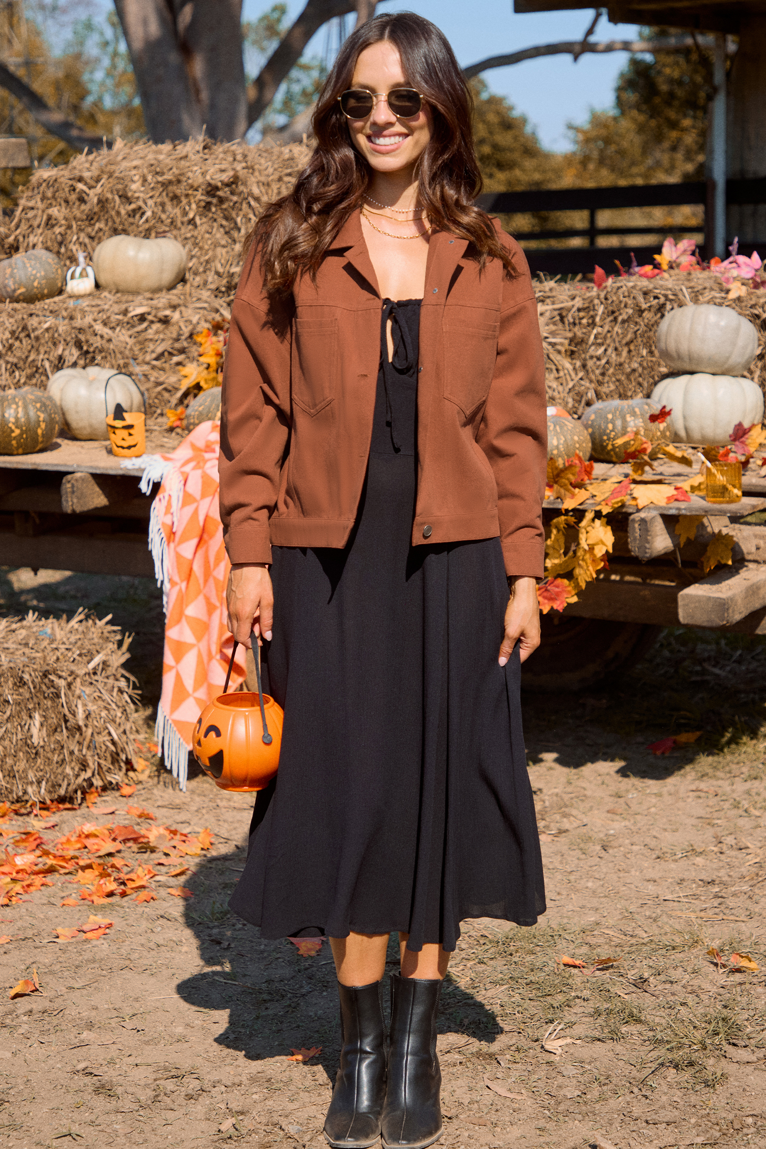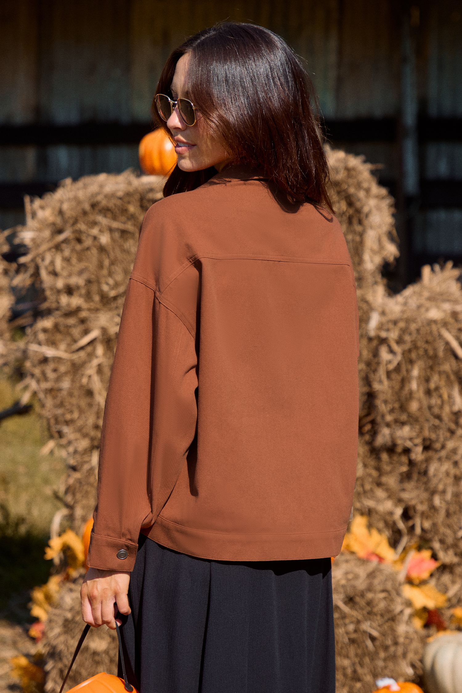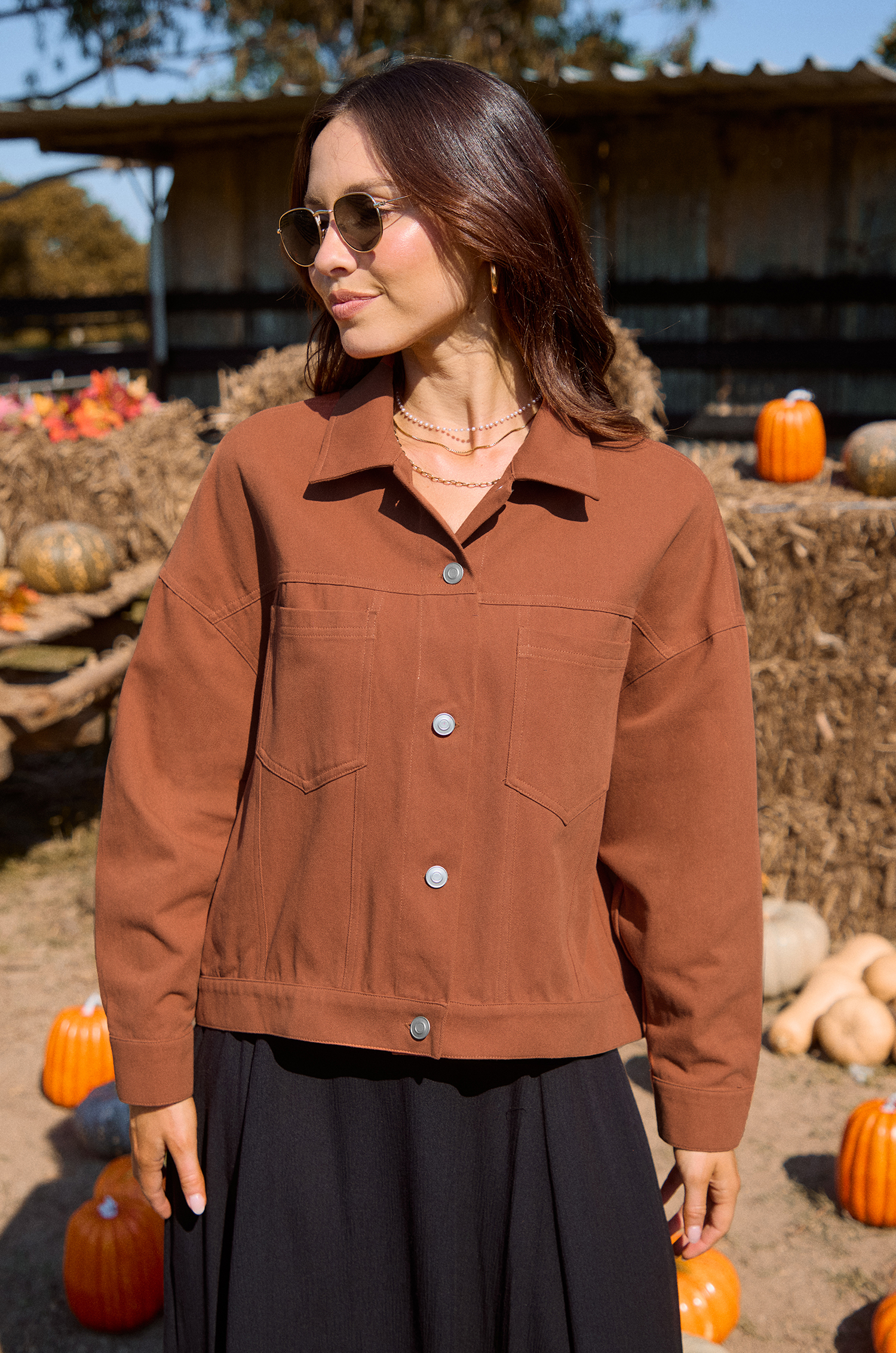 HomeBrown Collared Long Sleeve Front Button Jacket