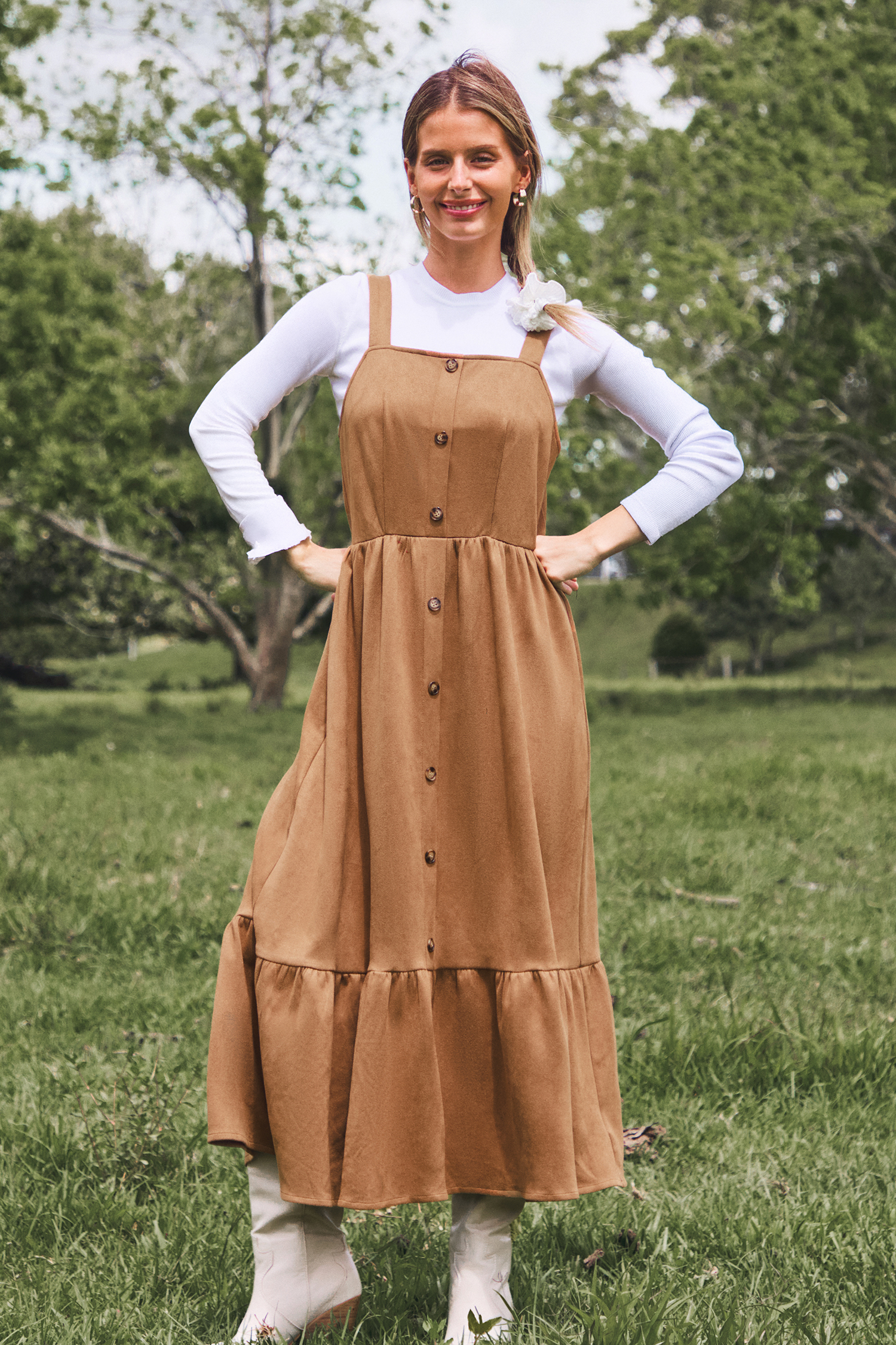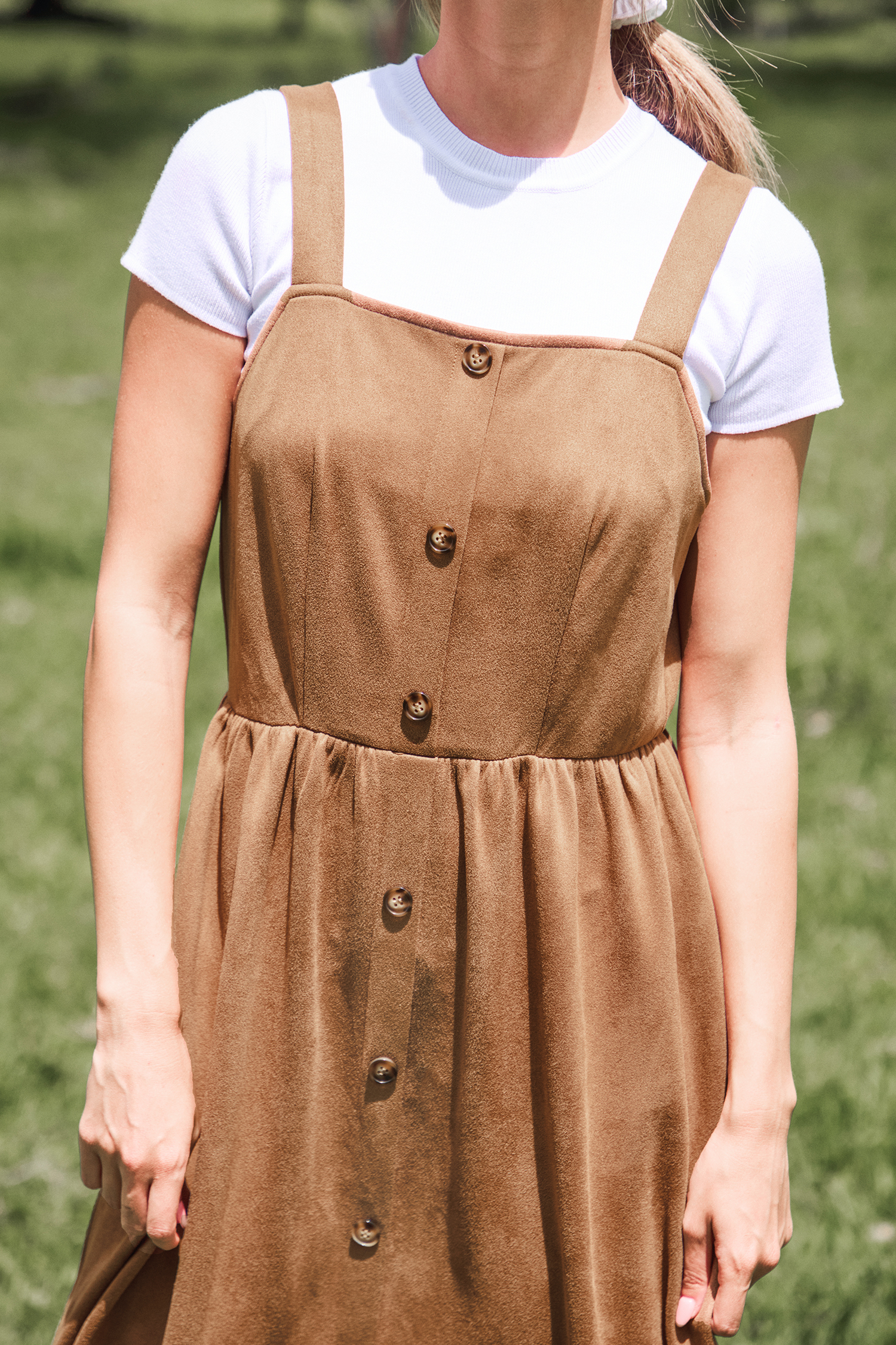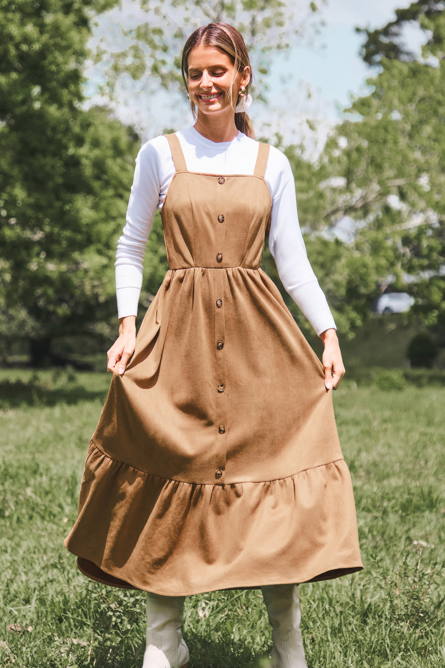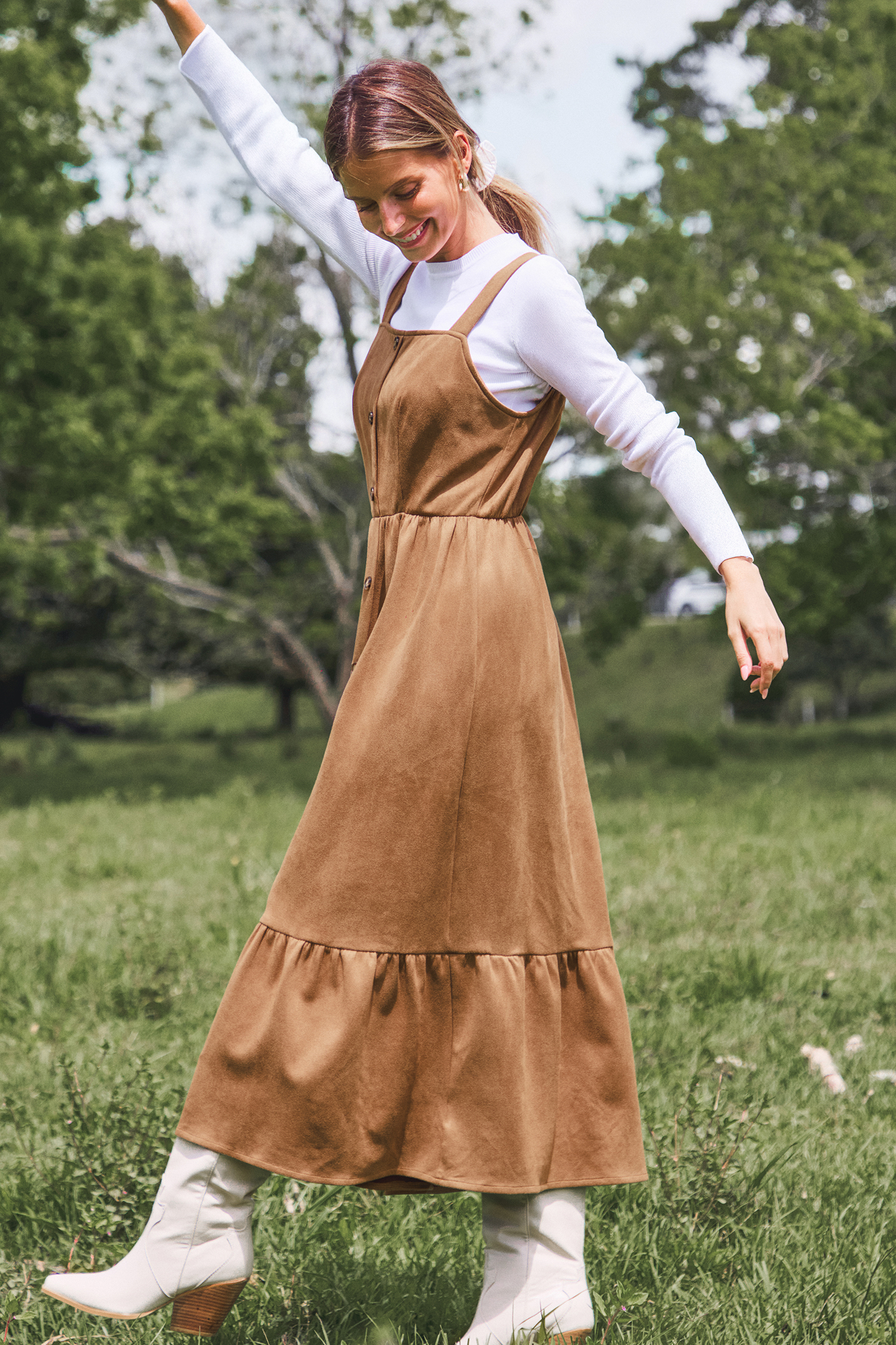 HomeBrown Faux Suede Sleeveless Midi Dress