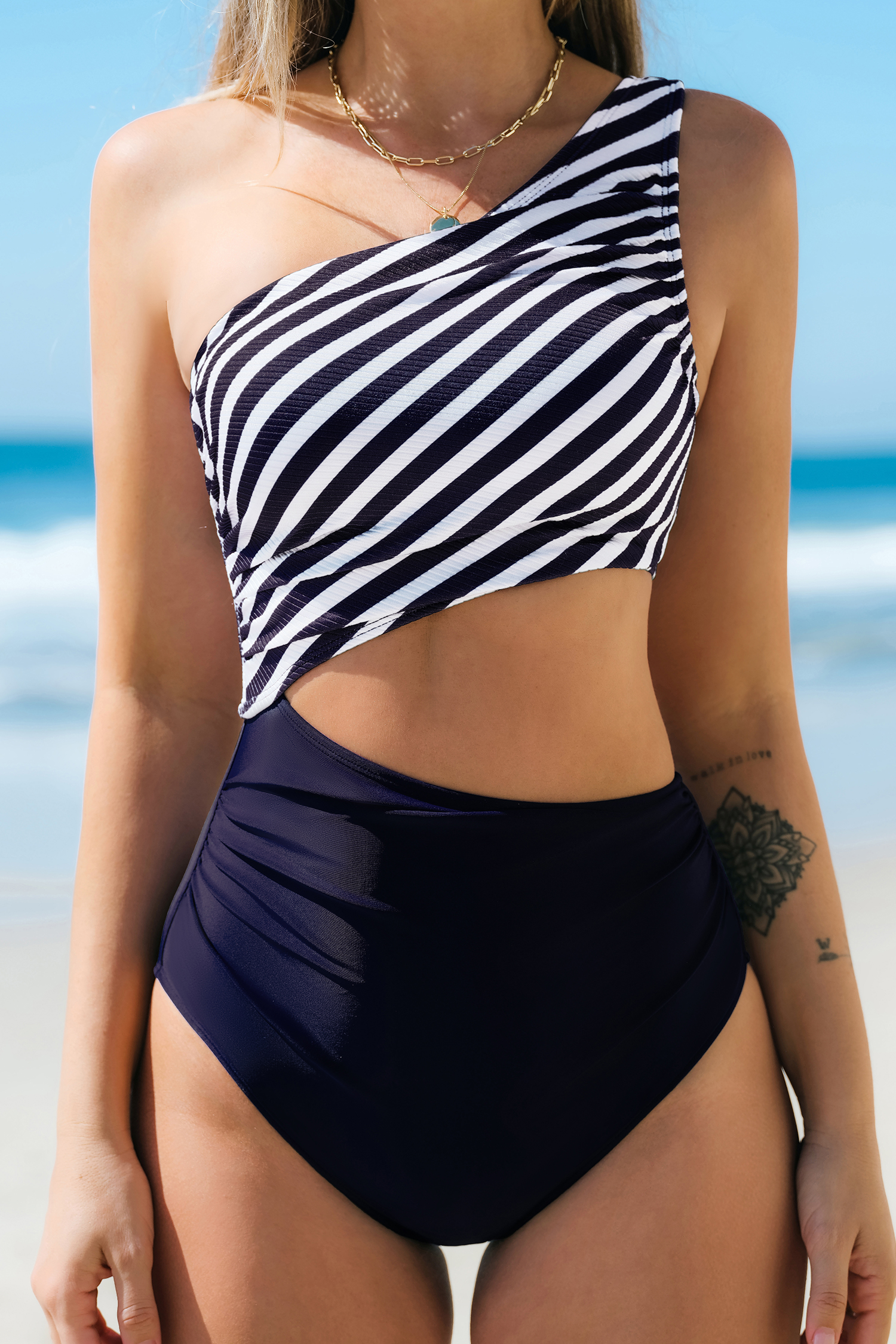 Cabana Days Striped One Shoulder Cutout One-Piece Swimsuit