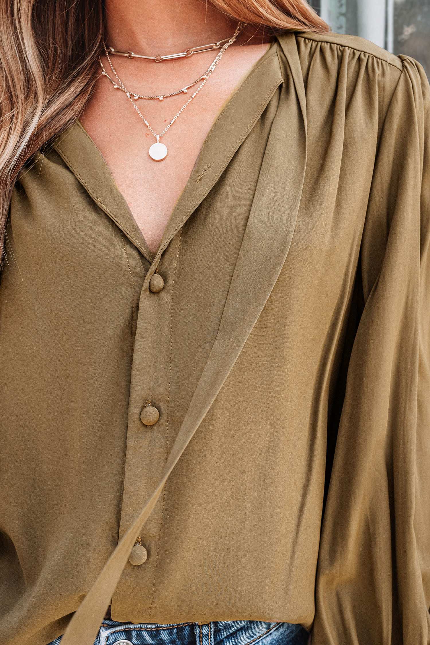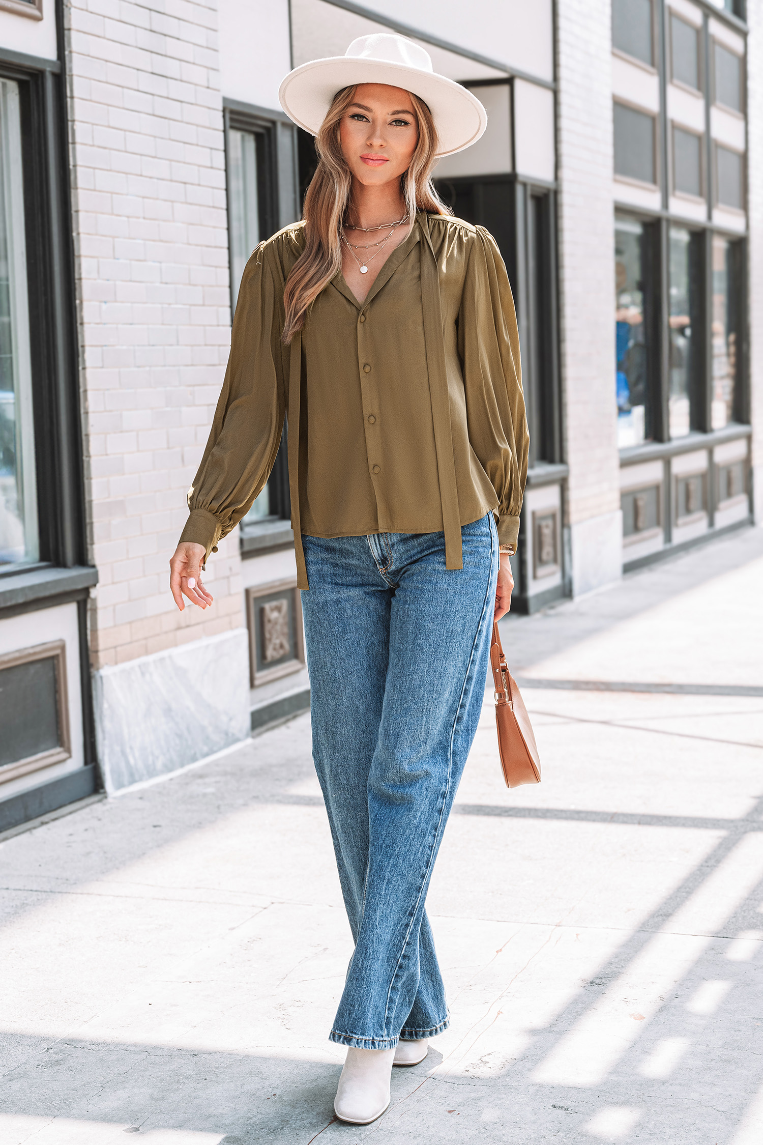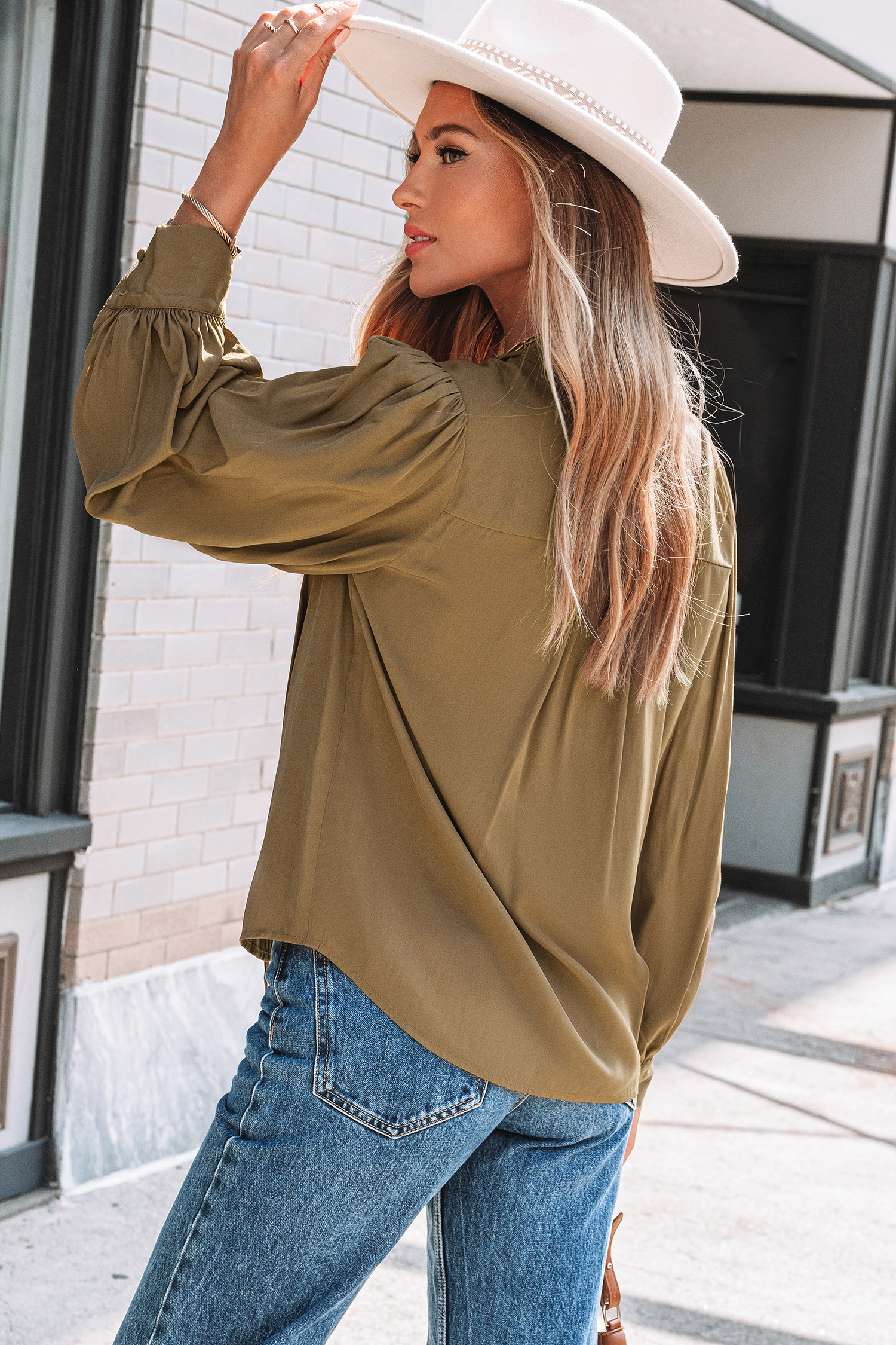 HomeCamel Tie Neck Puff Sleeve Blouse