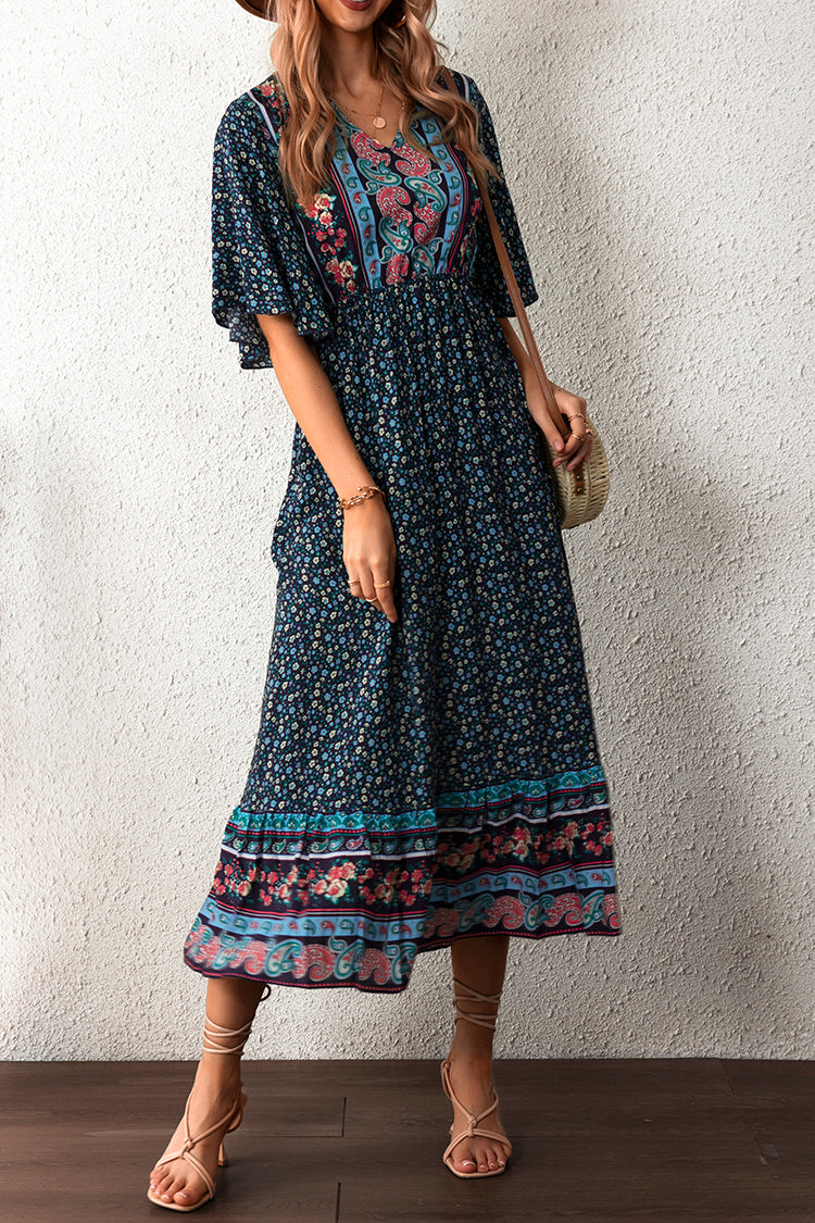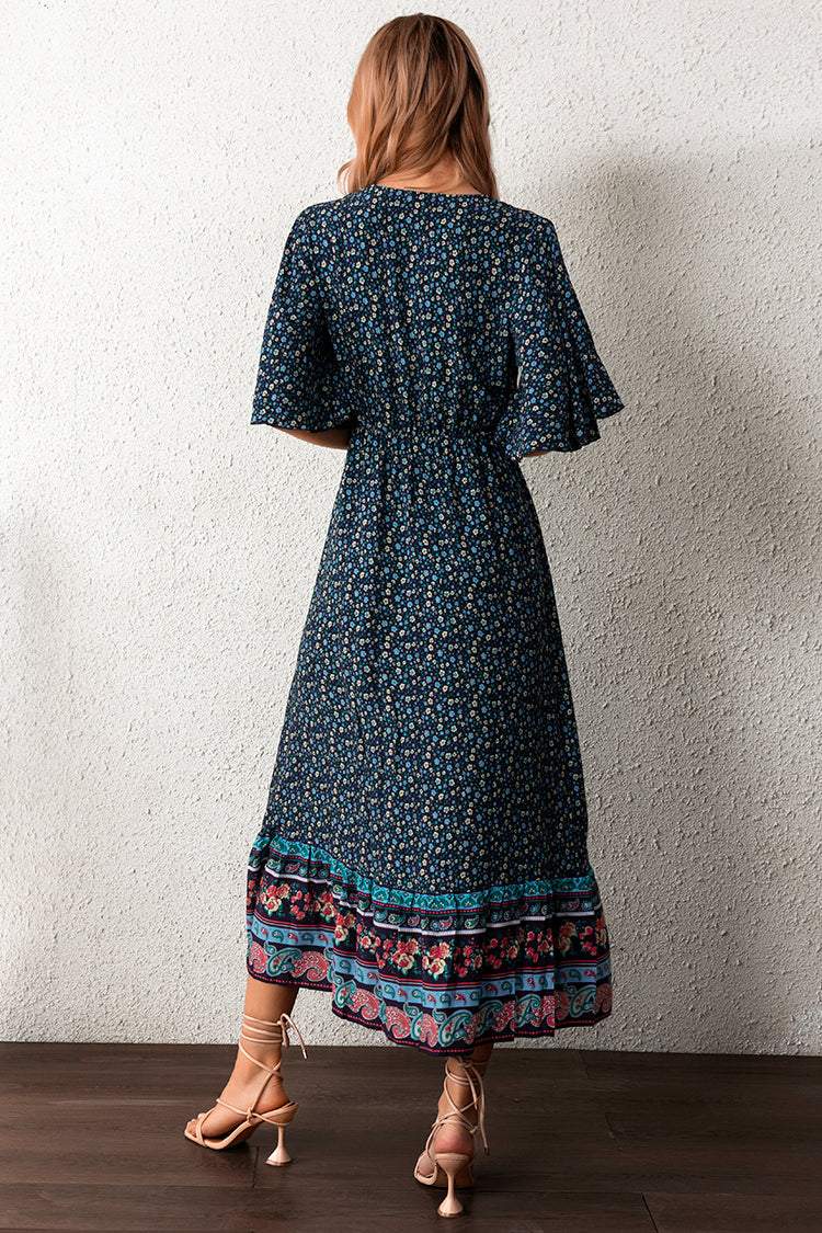 Navy Plunging Double Waist Tie Cover-Up Dress