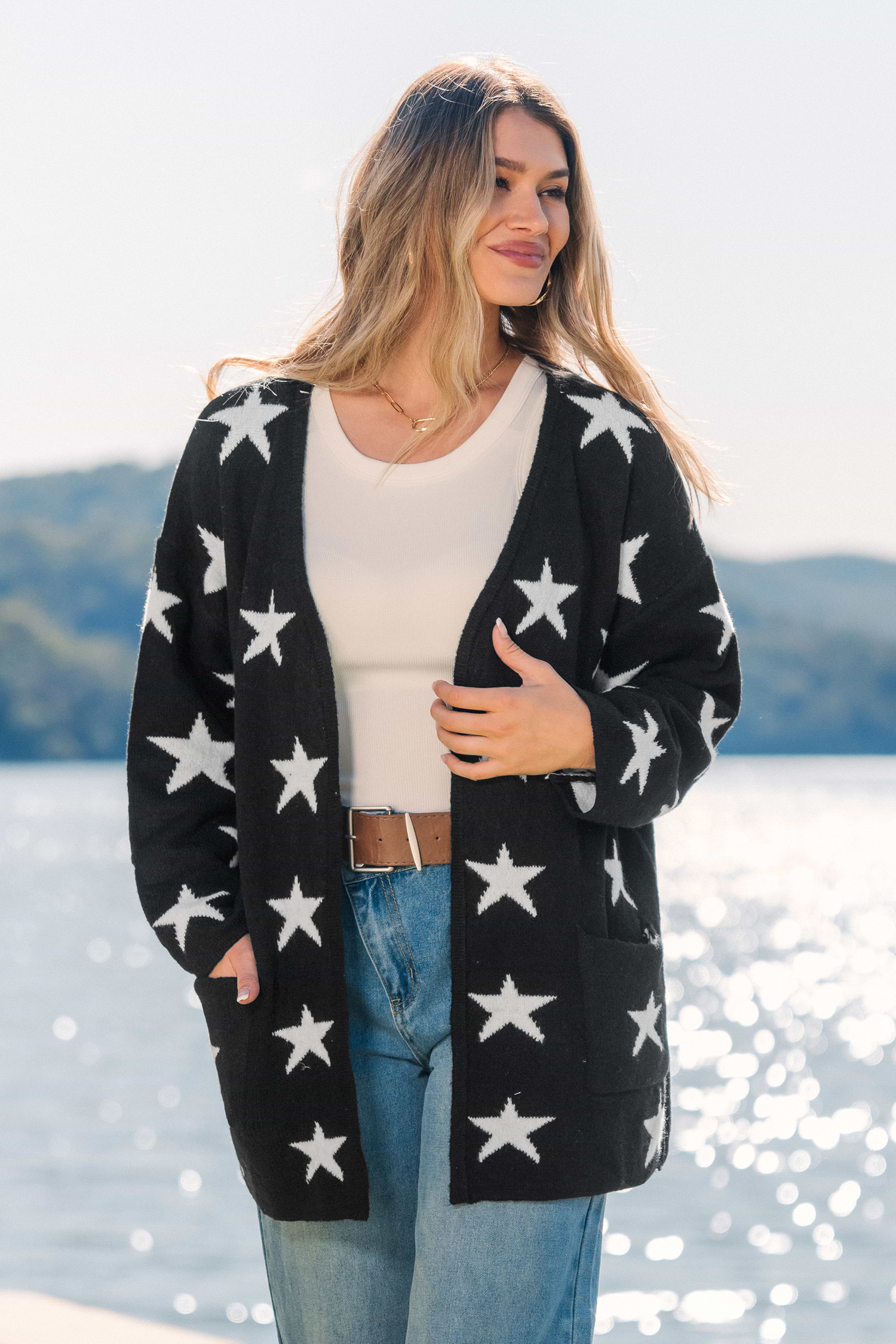 The Caroline Star Cardigan is effortlessly chic with a playful twist! Its open front and long sleeves create a relaxed silhouette perfect for layering over everything from casual tees to dresses for an easy, stylish look.