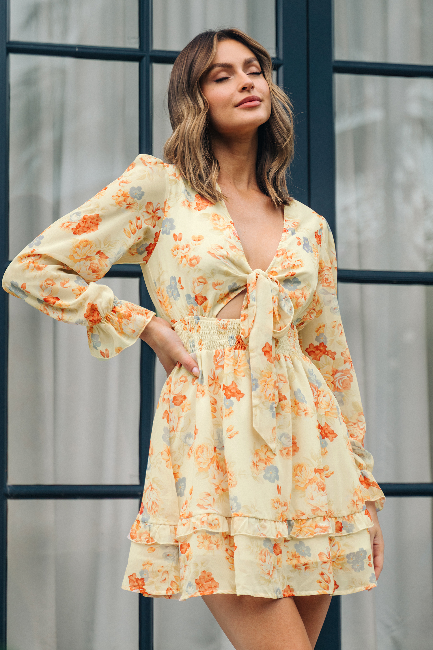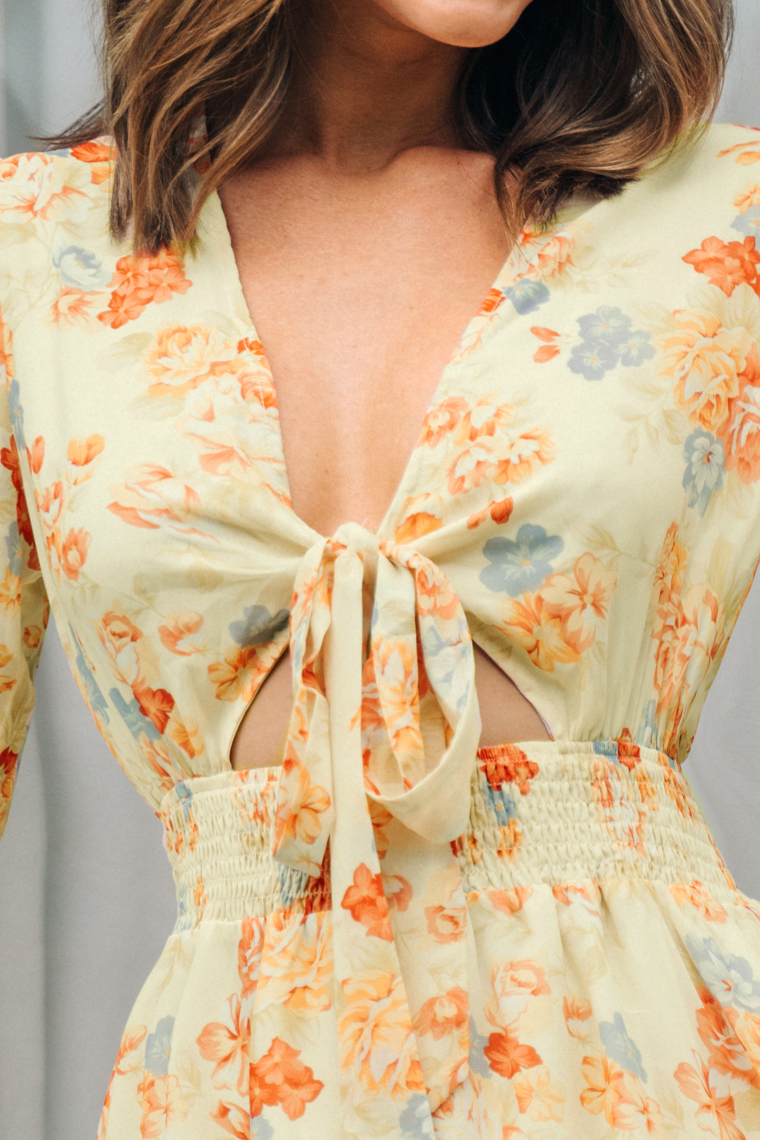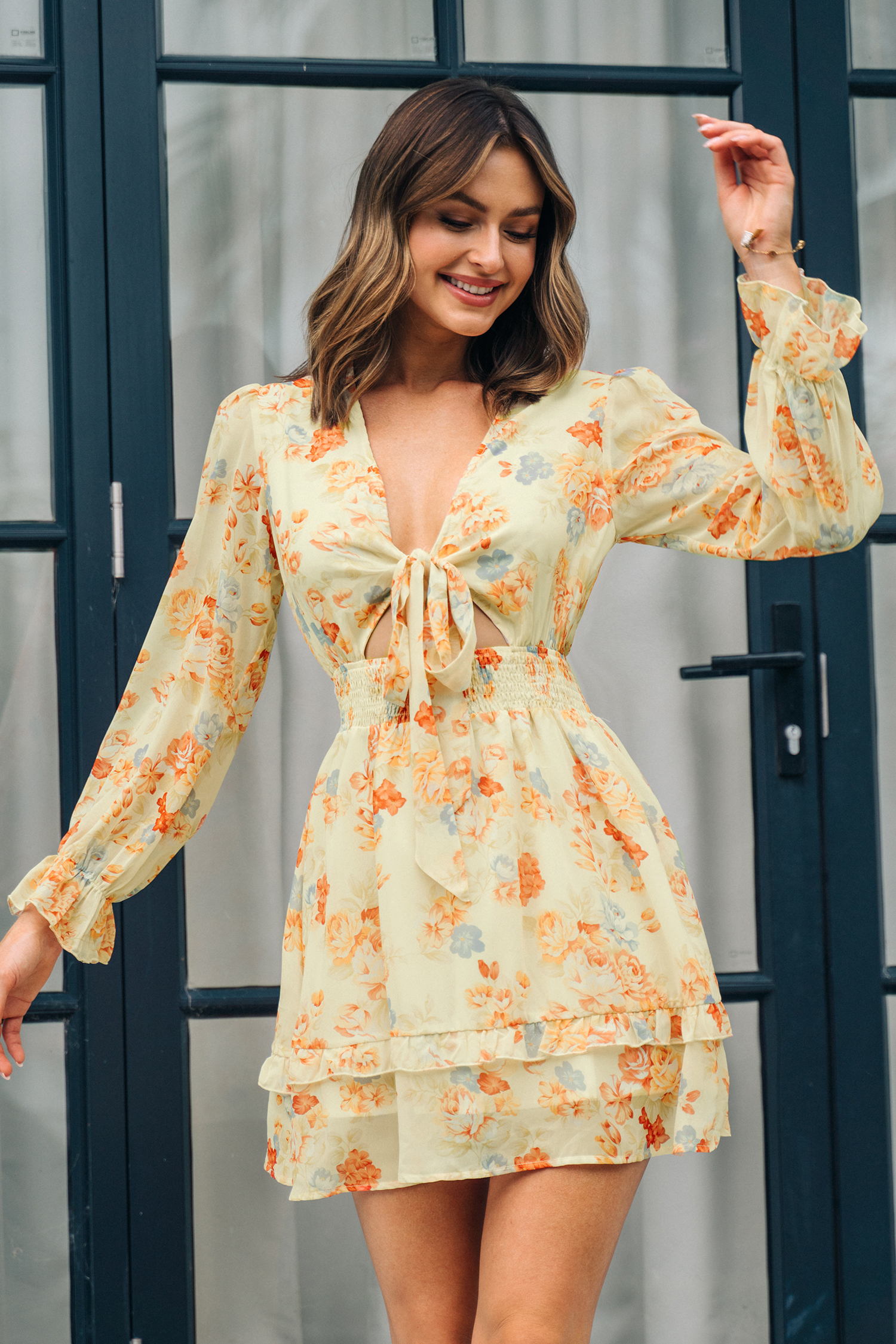 HomeCelina V-neck Floral Lace Up Mini Dress