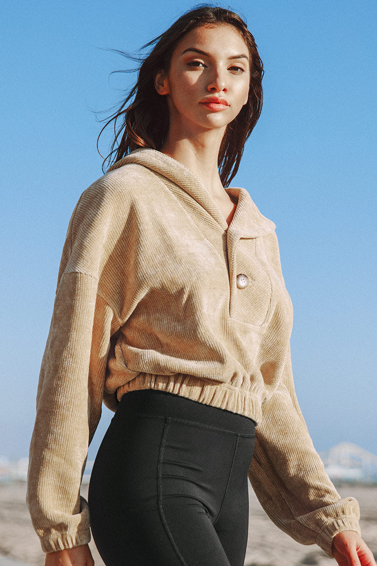 Cerise Half Placket Button Front Sweatshirt