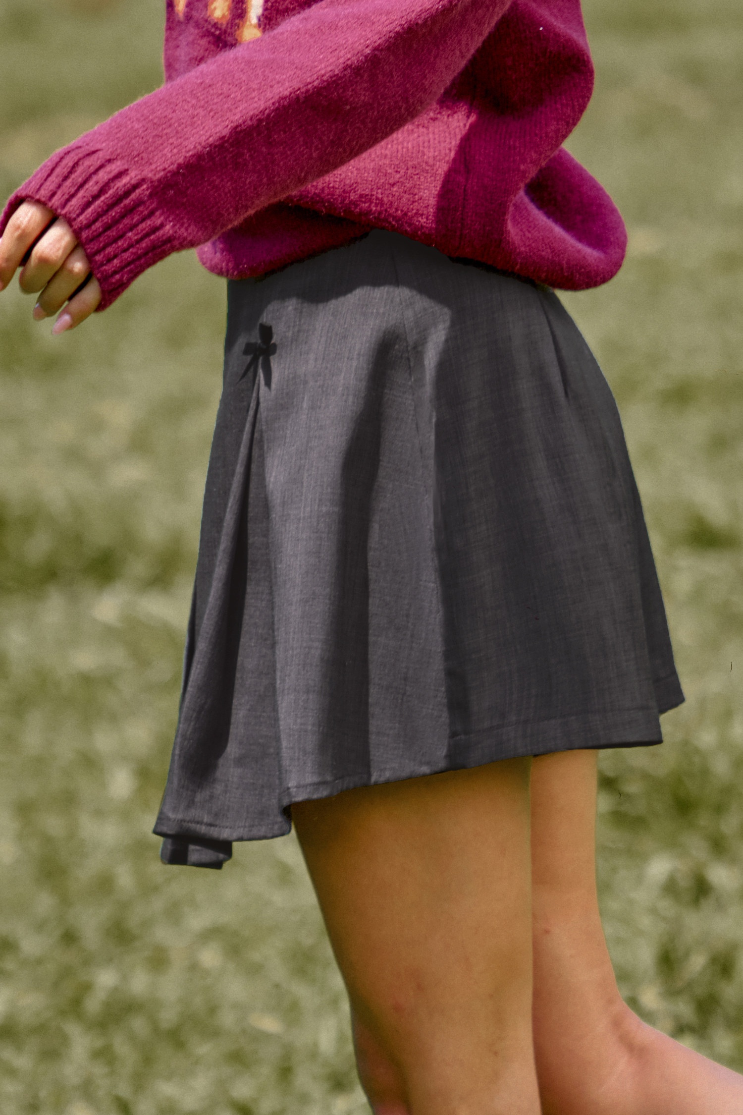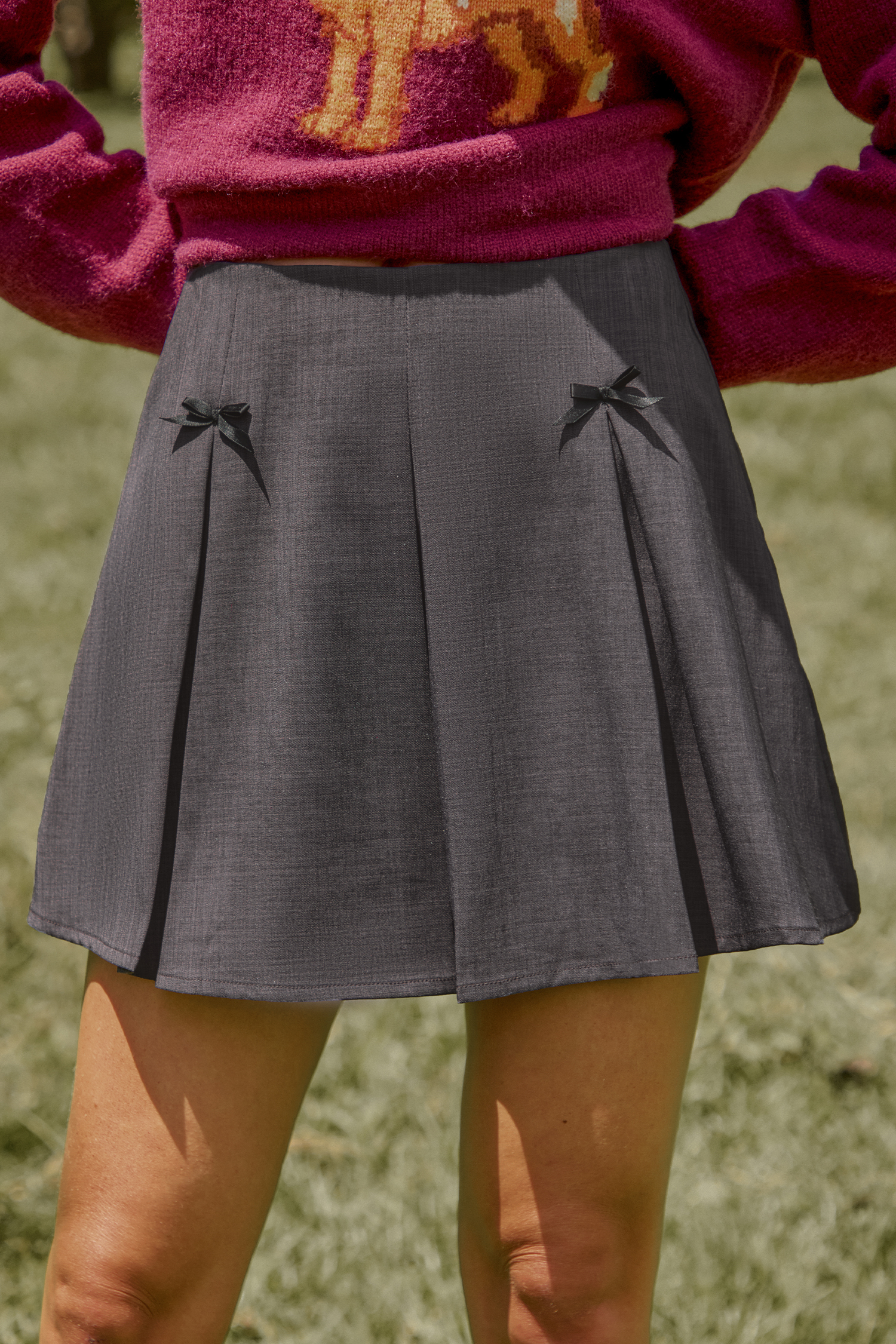 Charcoal Grey Pleated Flared Leg Bow Shorts