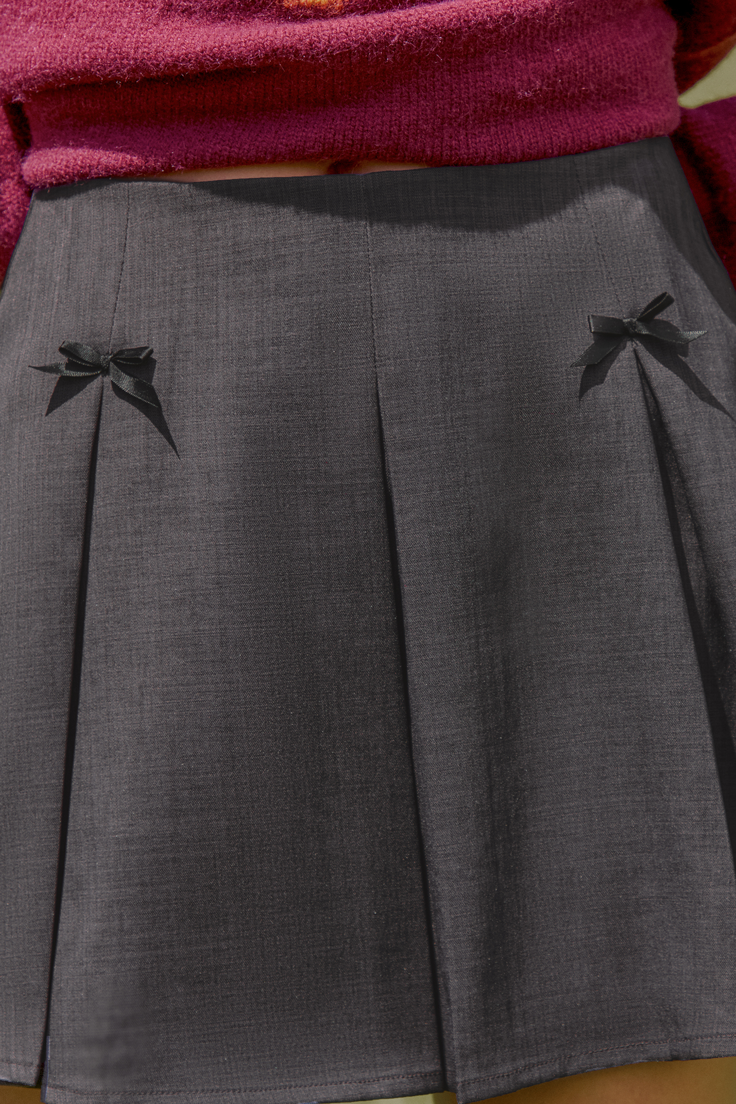 HomeCharcoal Grey Pleated Flared Leg Bow Shorts