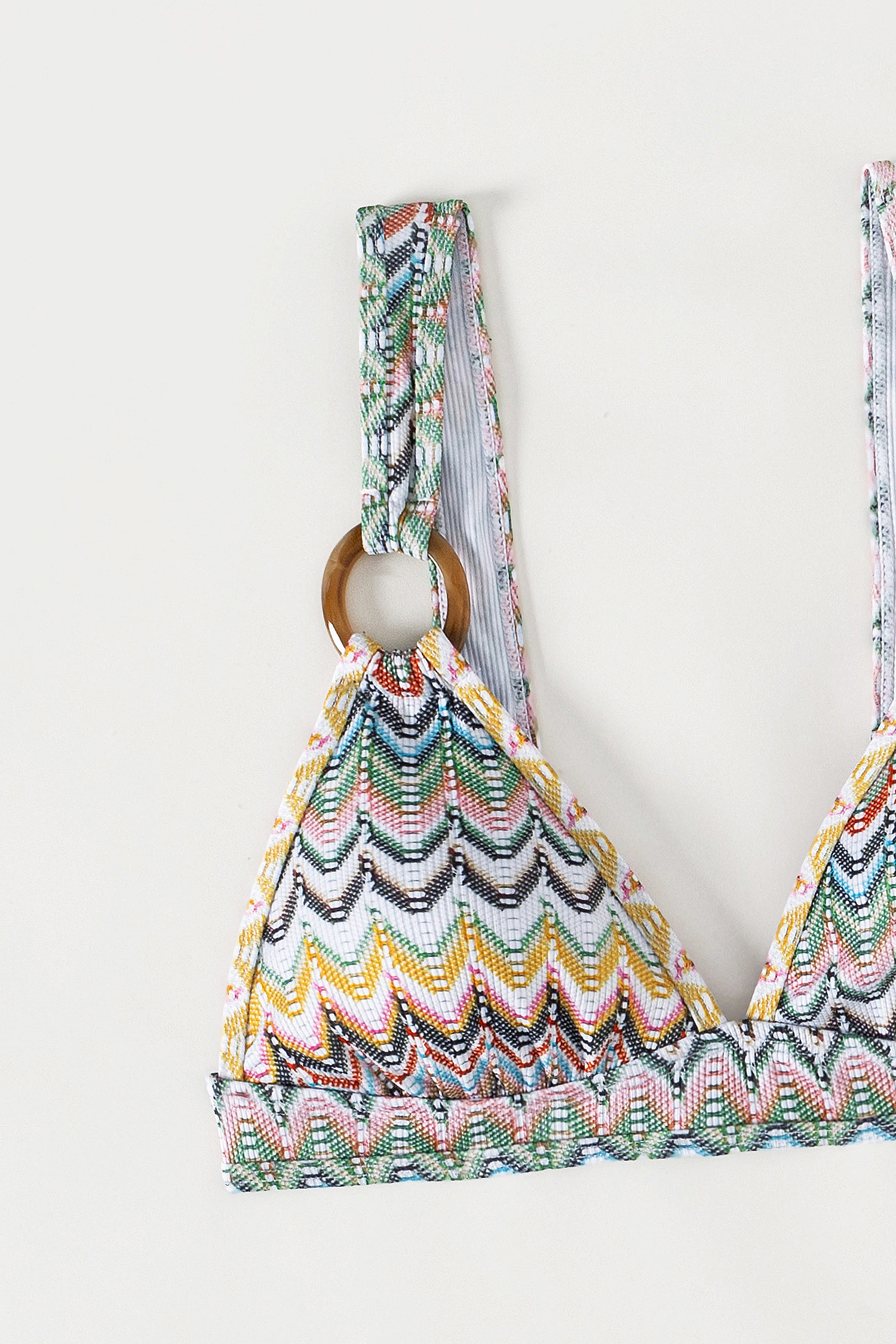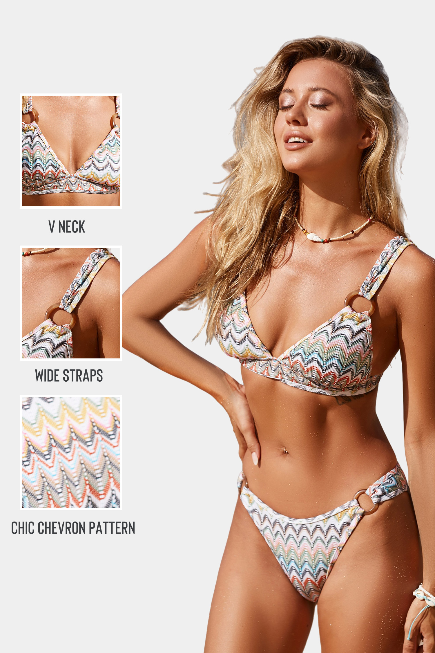 Chevron V-Neck Triangle Top & O-Ring Bikini Swimsuit