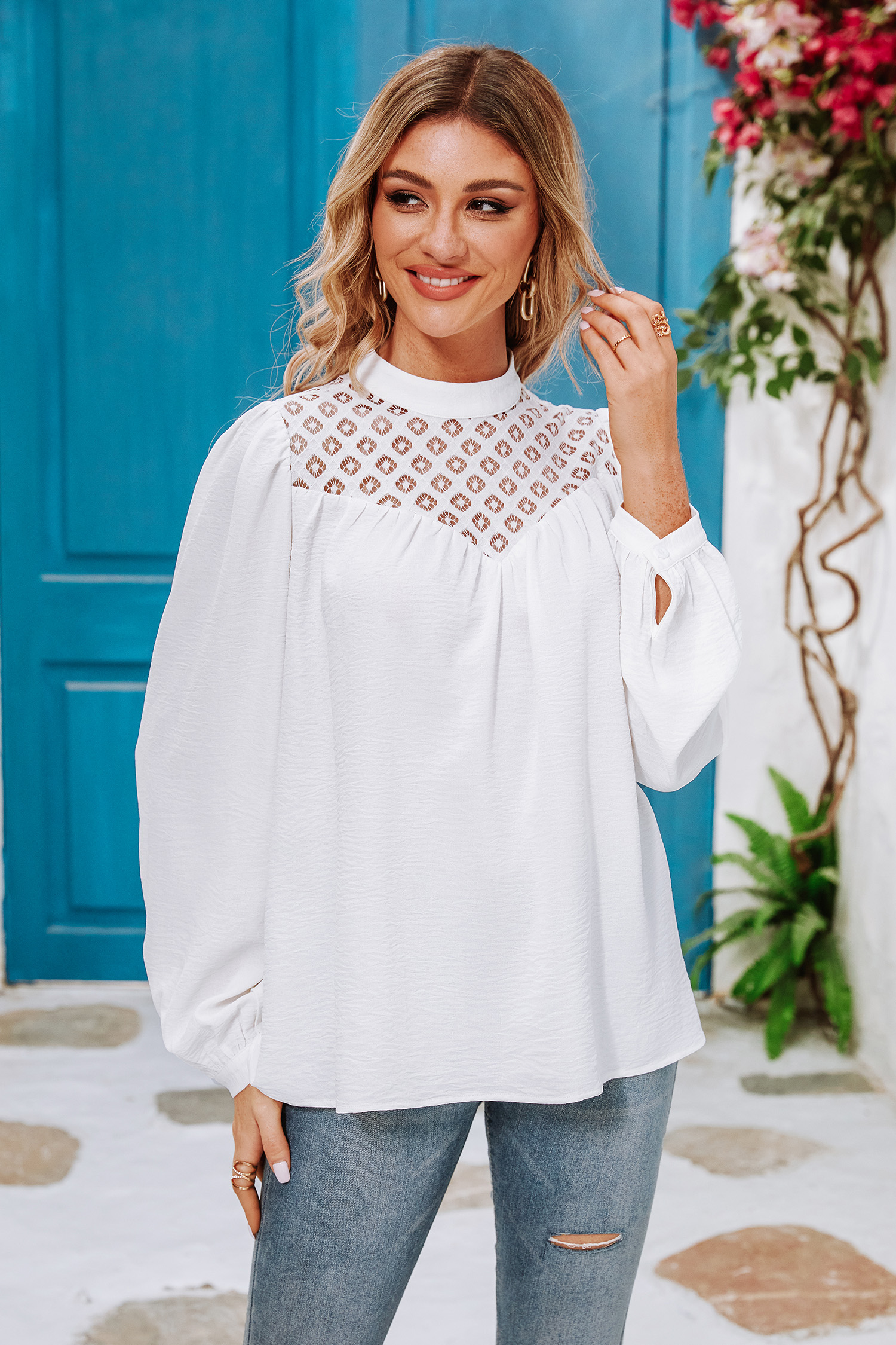 Cierra Mock Neck Lace Blouse