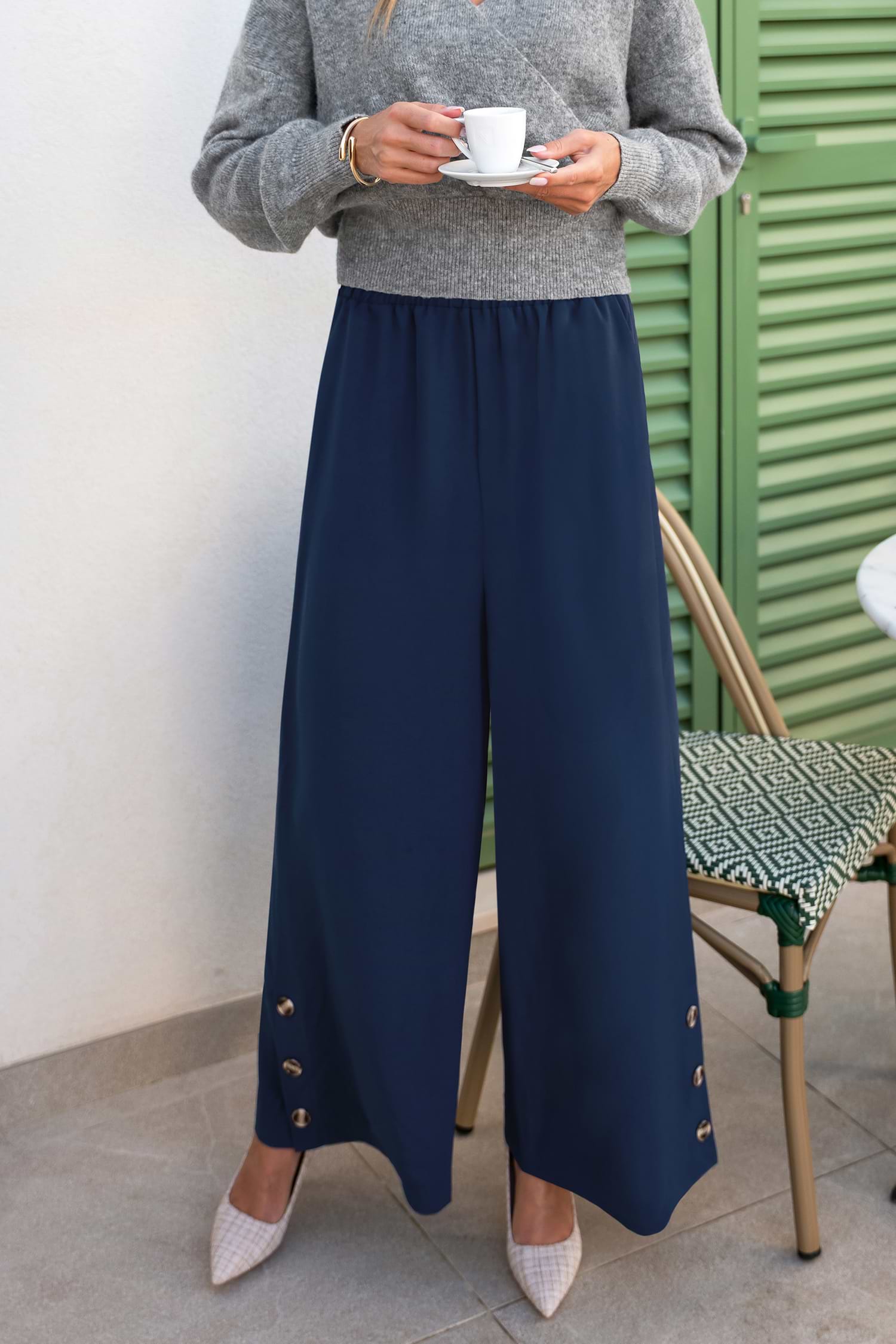 The City Tempo Blue Trousers are your new go-to for polished, effortless style! With an elasticized waist, handy pockets, and a straight-leg cut, they balance comfort and city-ready sophistication.