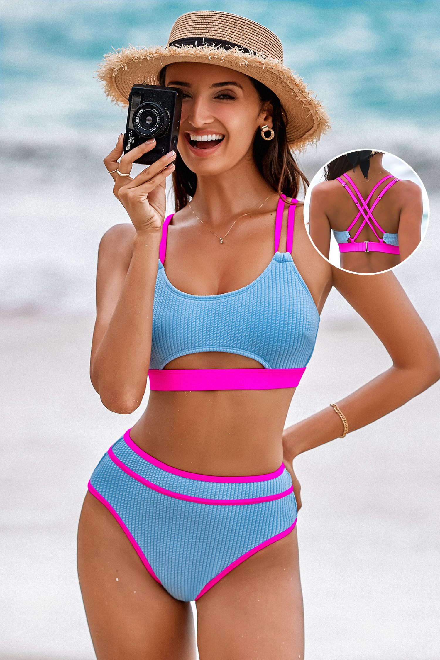 HomeColorblock Cutout Bikini Top & High-Rise Bottoms Set