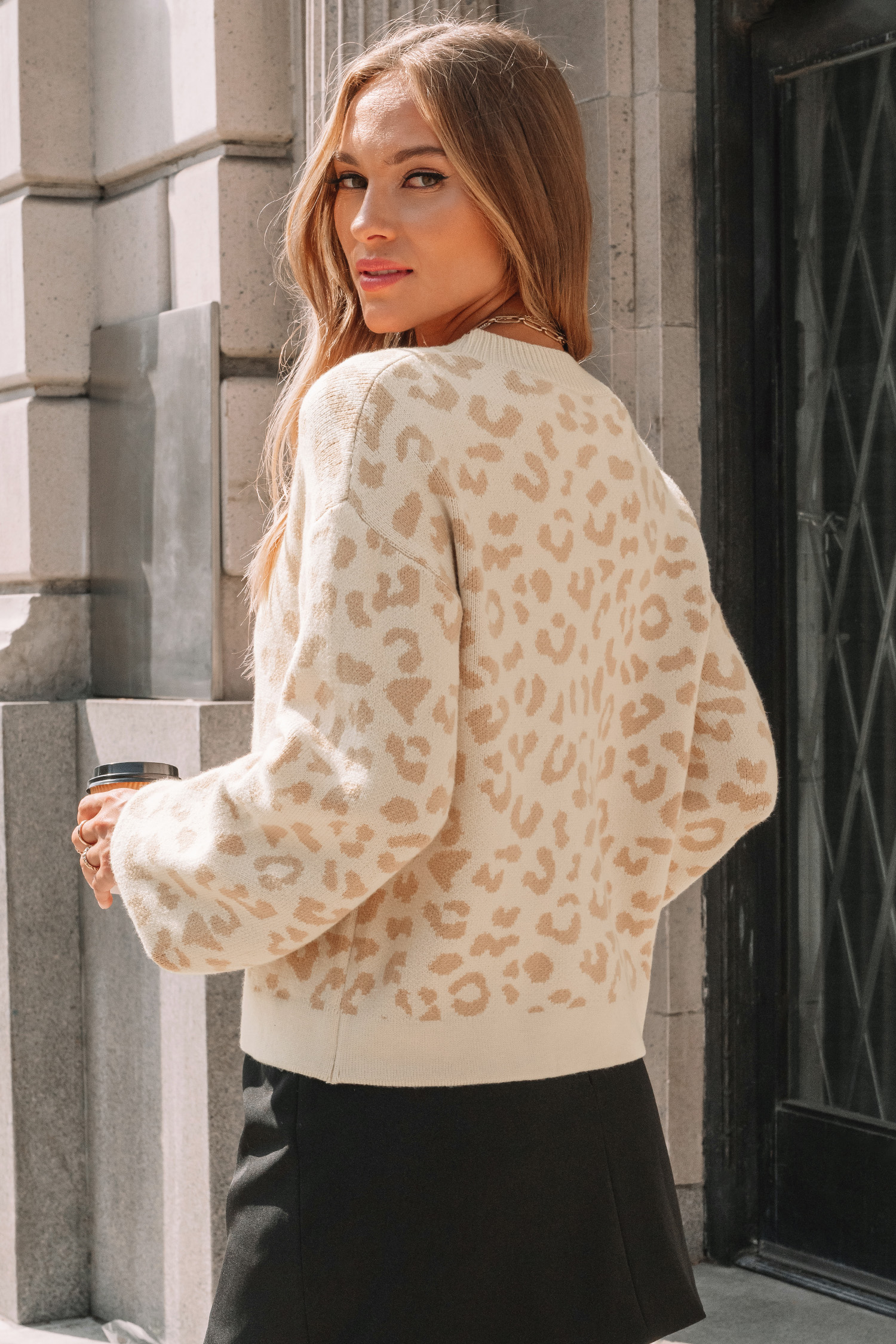 HomeCoral Leopard Print Long Sleeve Crewneck Jumper