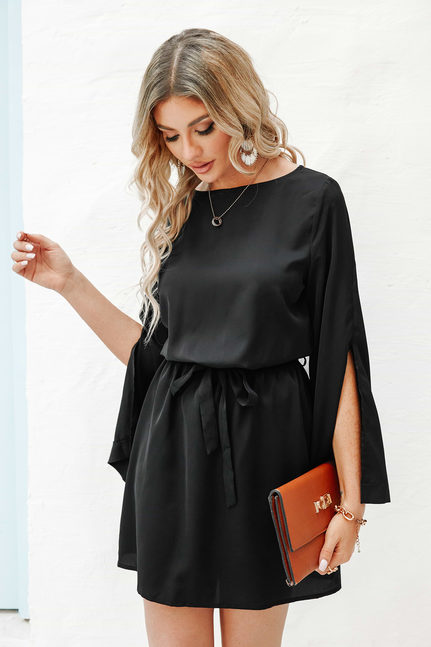 HomeCozy Corner Belted Long Sleeve Mini Dress