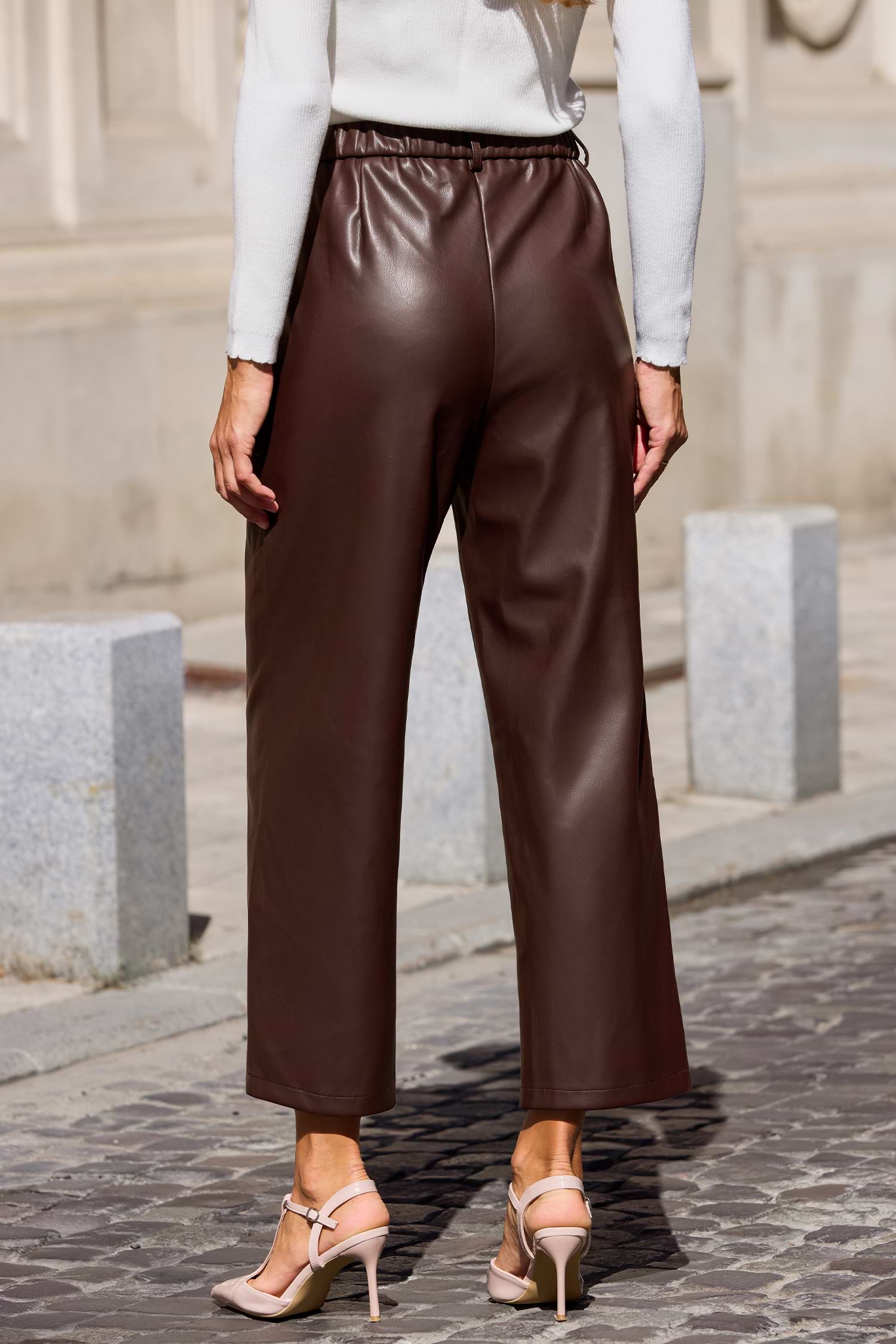 The Danger Zone Brown Trousers bring confident, effortless energy to your everyday looks! Crafted from faux leather and designed with belt loops, a pocket, and a straight leg cut, they’re versatile enough for day-to-night styling.