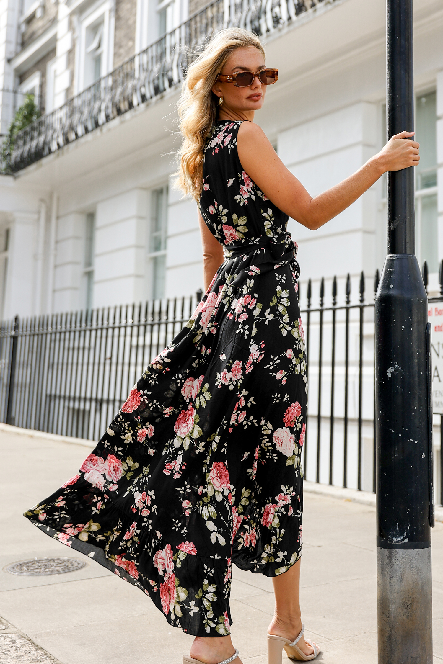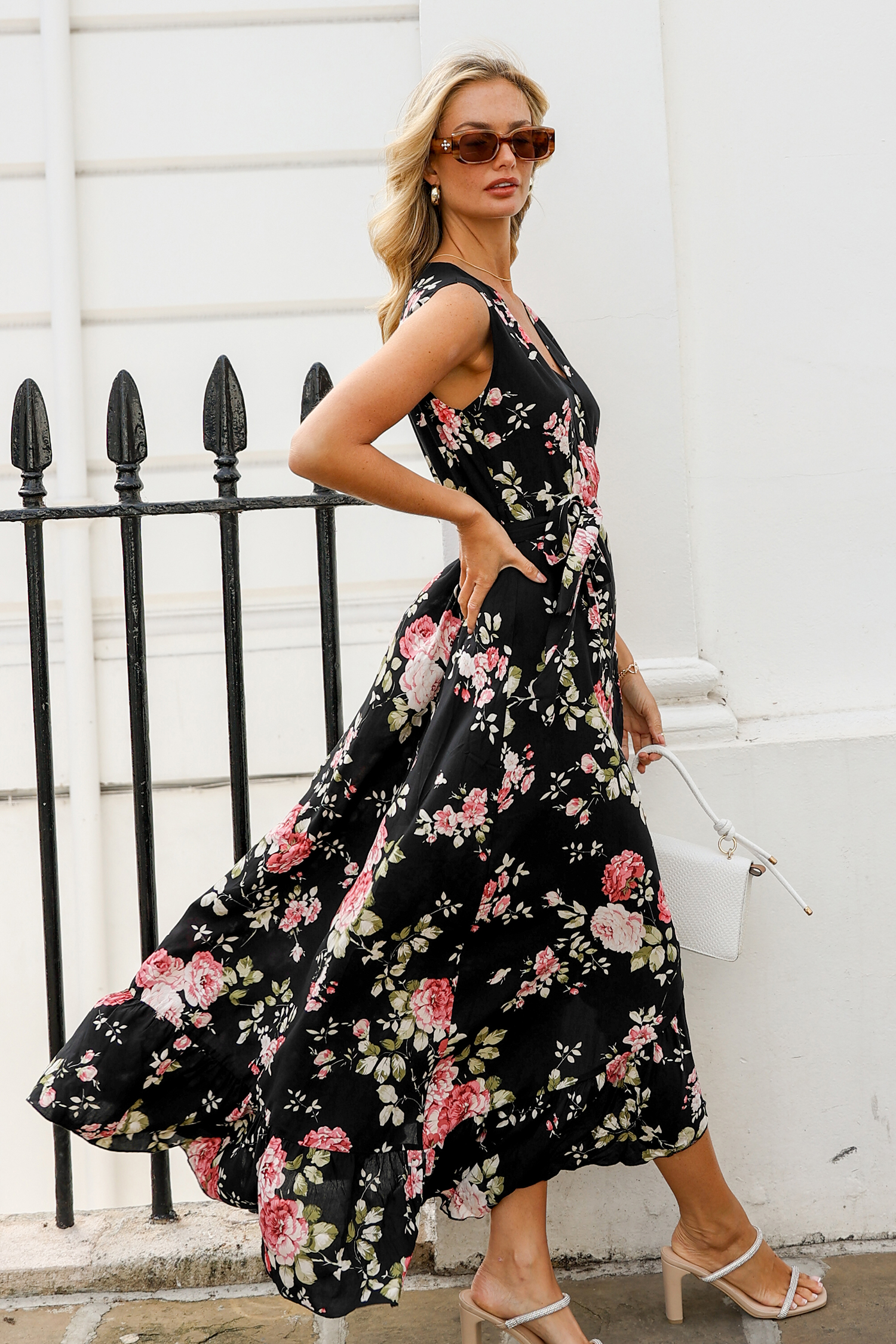 Dark Floral Sleeveless V-Neck Maxi Dress