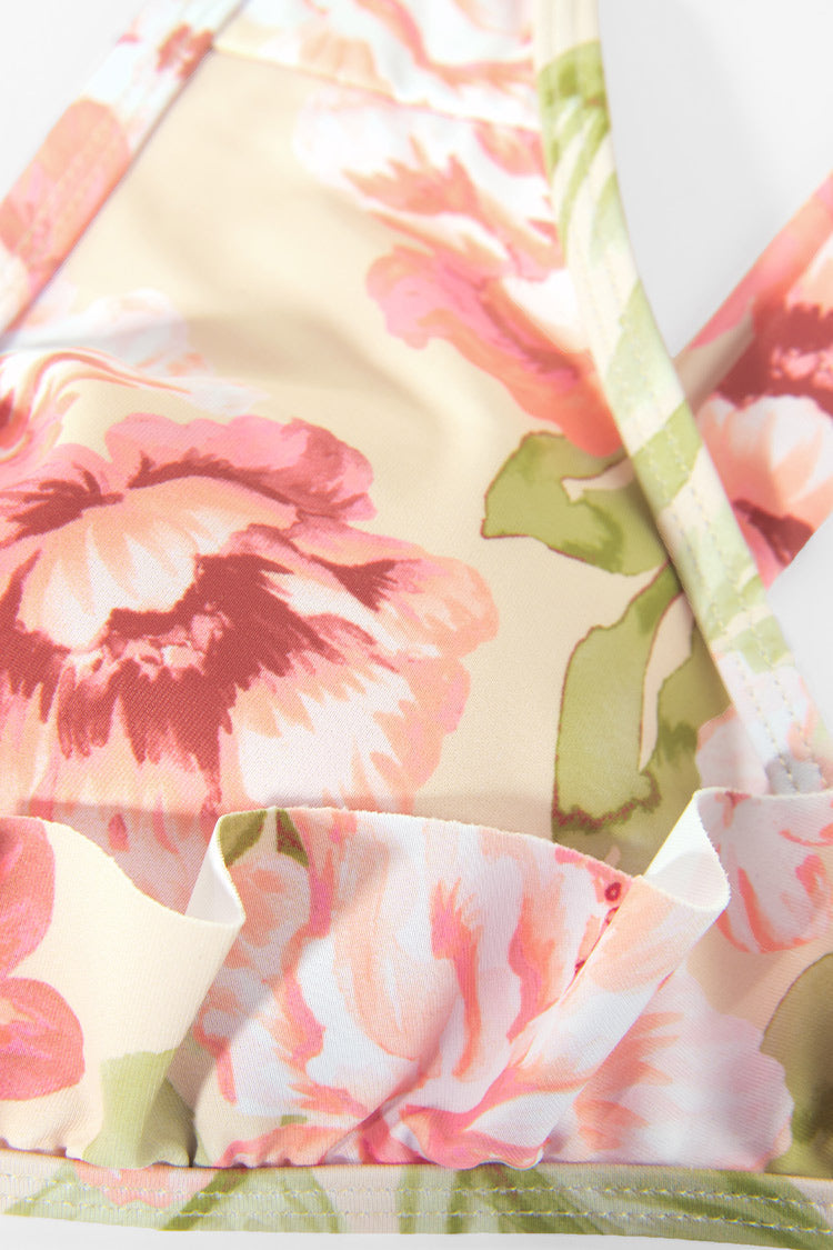 Darling Rose Ruffled V Neck Bralette And Classic Hipster Set