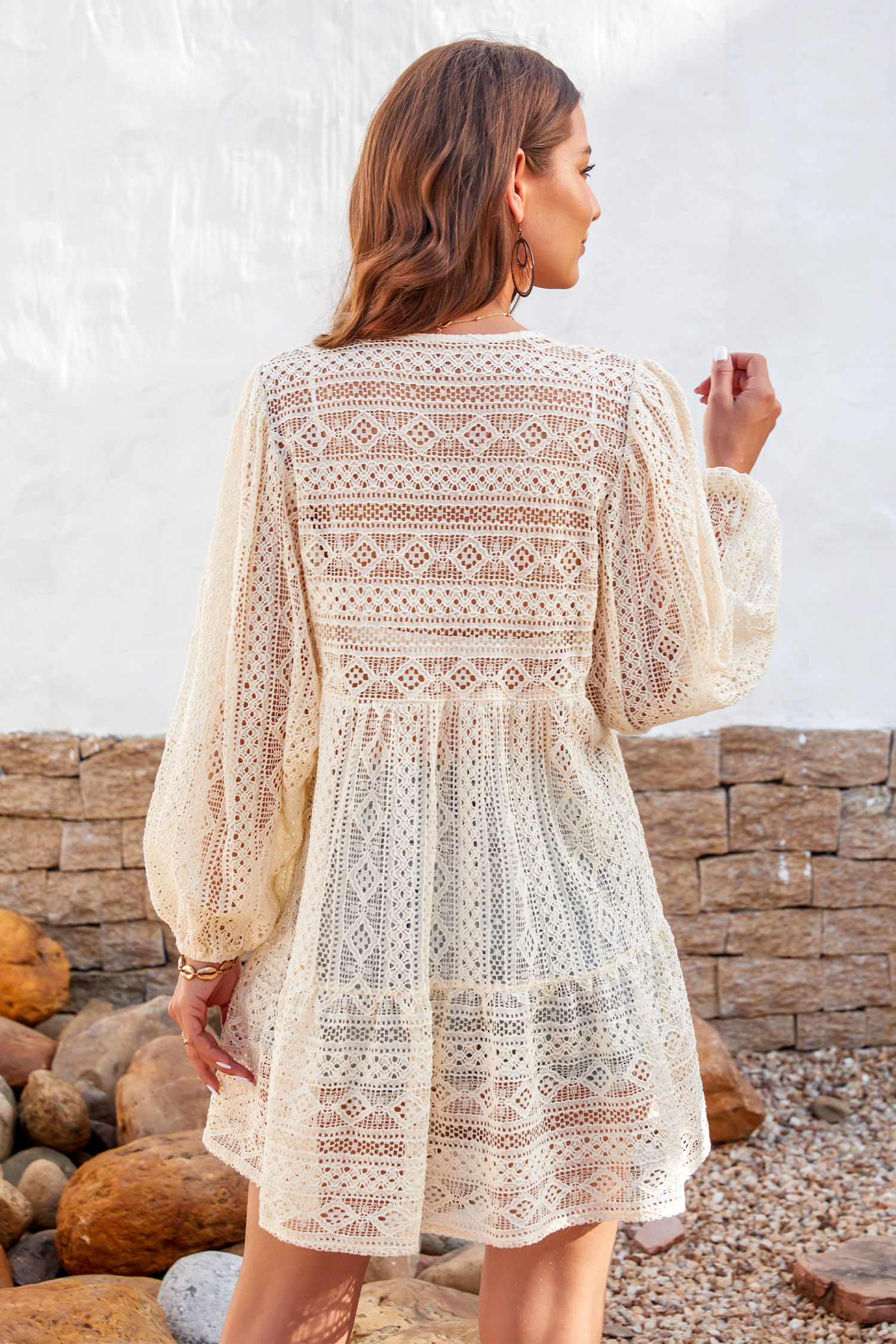 Beige Crochet Short Sleeve Cover-Up Mini Dress