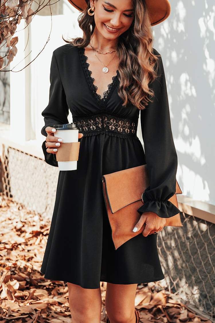 HomeDeniz Lace-Trim Trumpet Sleeve Dress