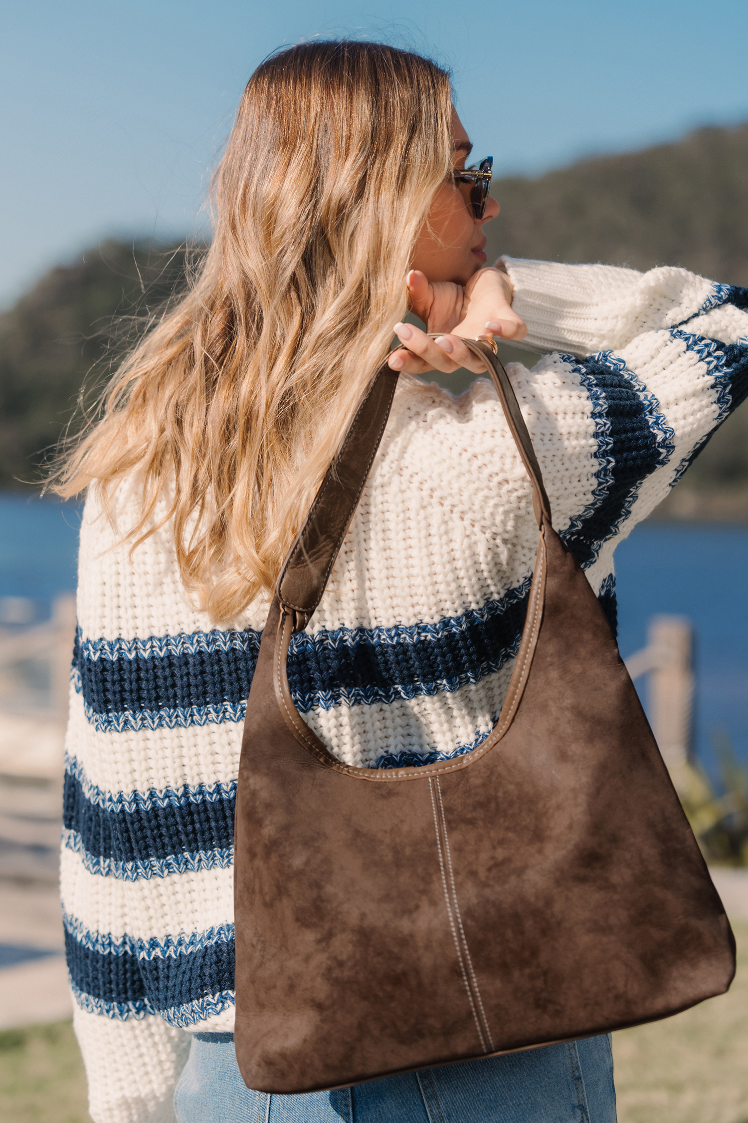 The Devon Brown Shoulder Bag is effortlessly chic and perfect for everyday! Faux suede and just the right size for your essentials make it a go-to for autumn-ready style.