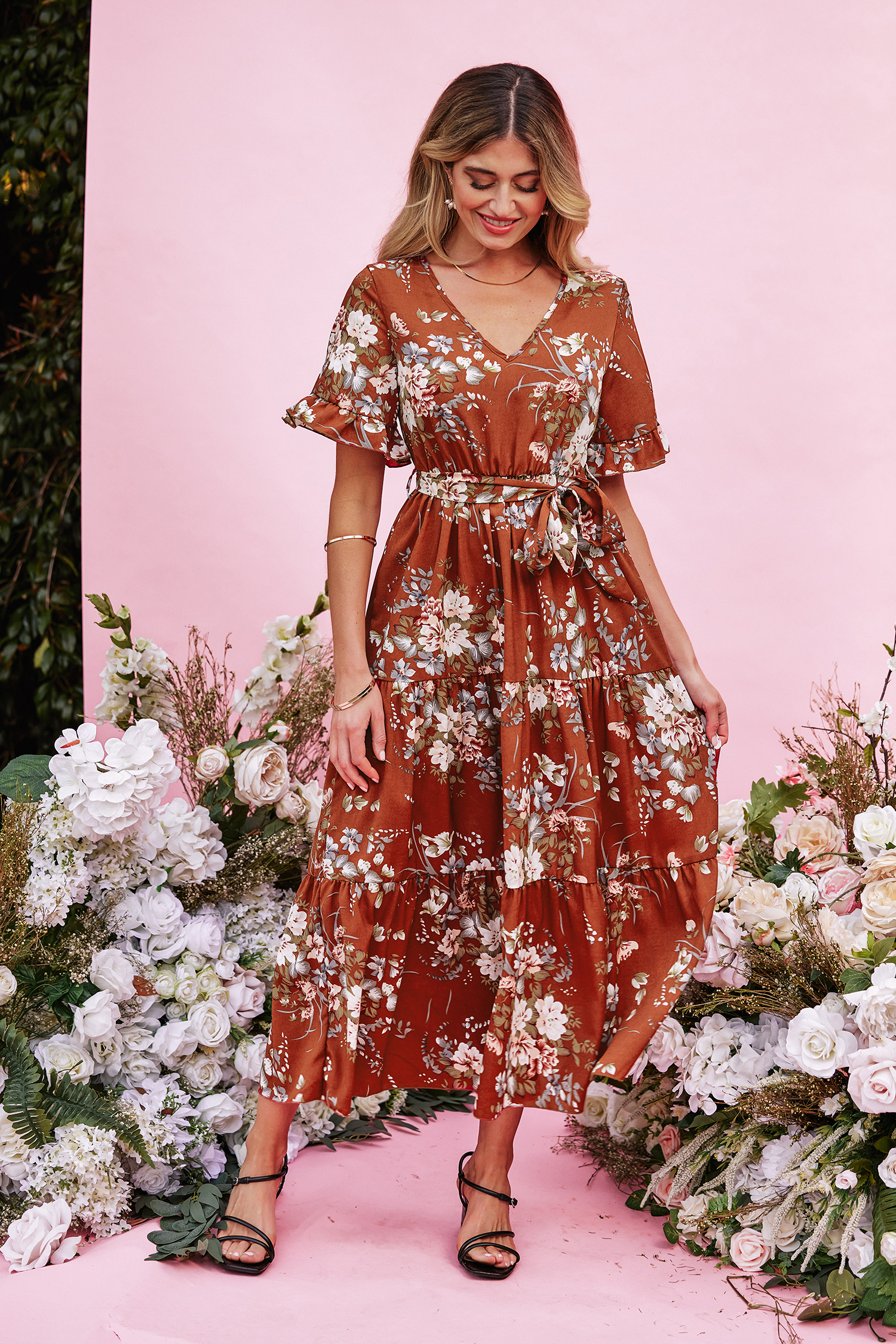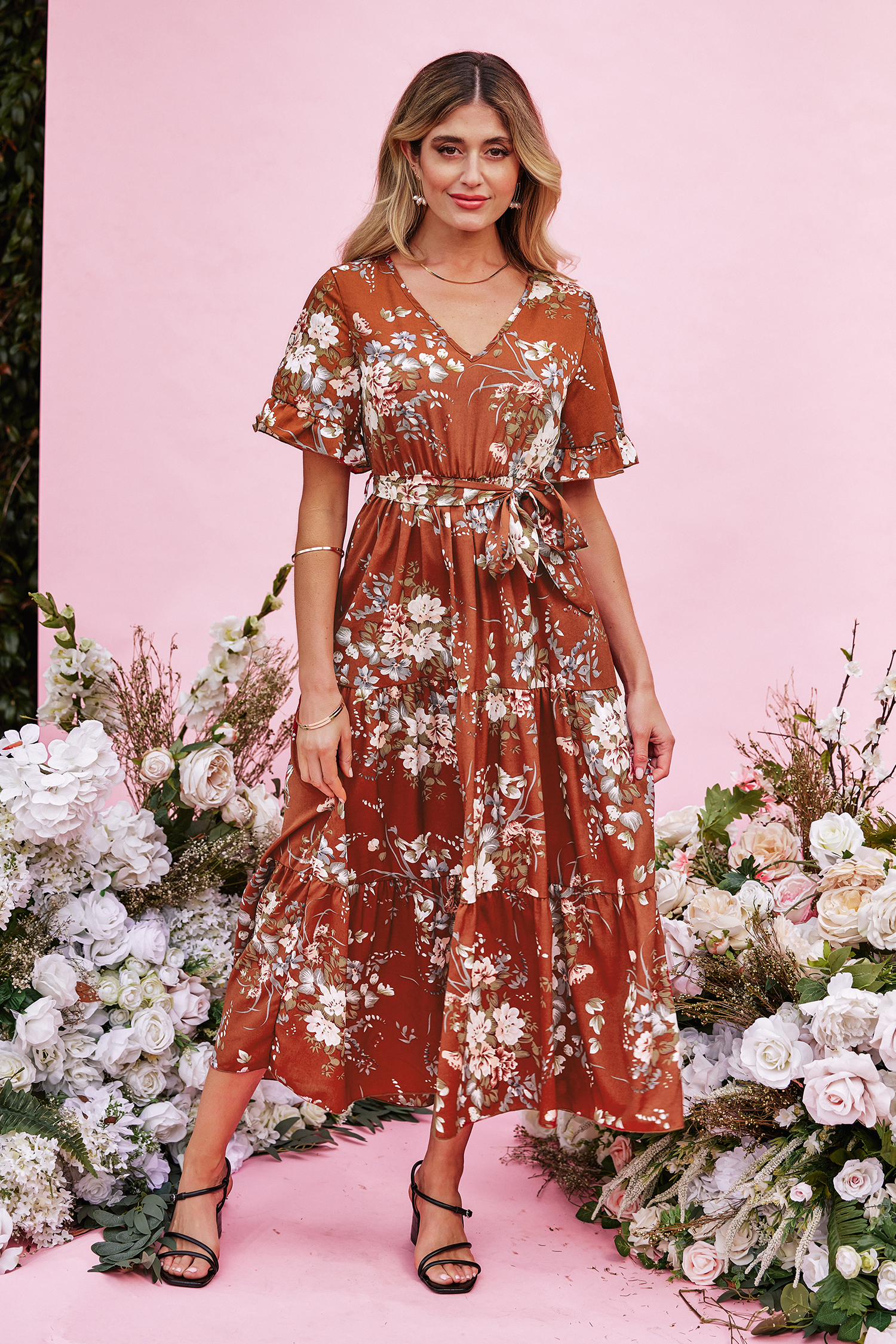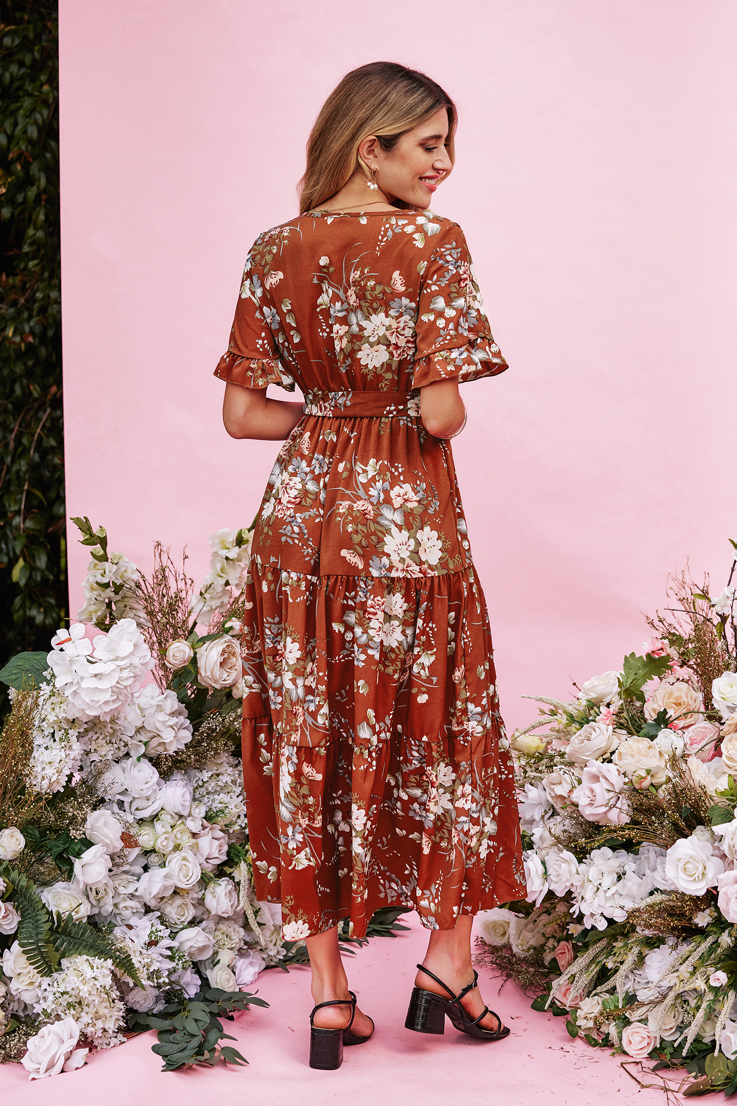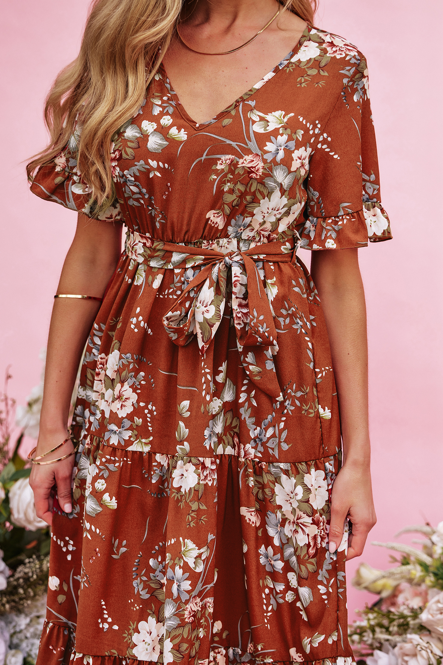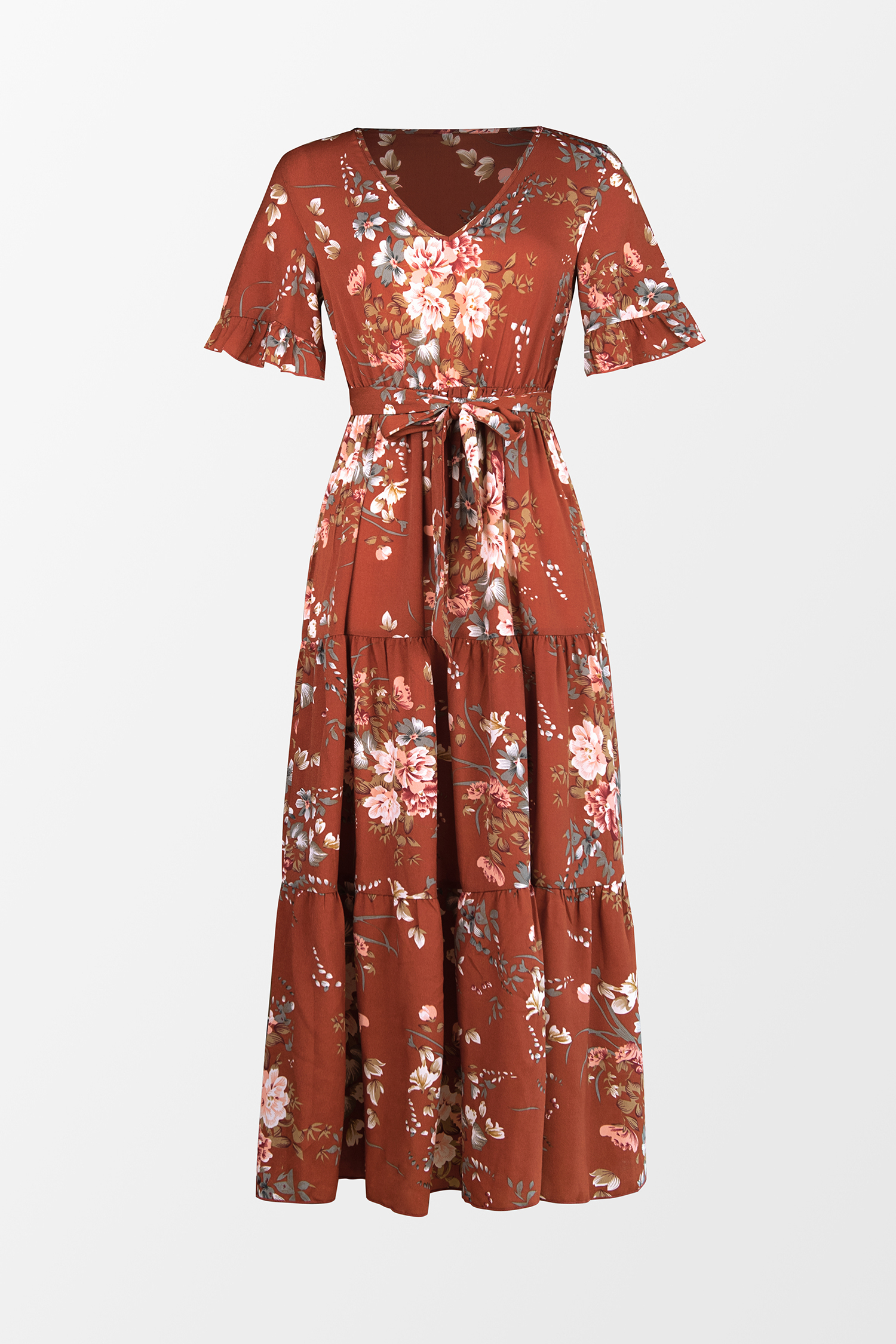 HomeDevotion Belted Floral Print Dress