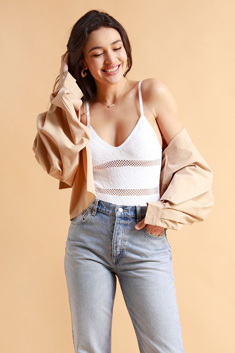 Emory White Texture Fishnet Insert Bodysuit