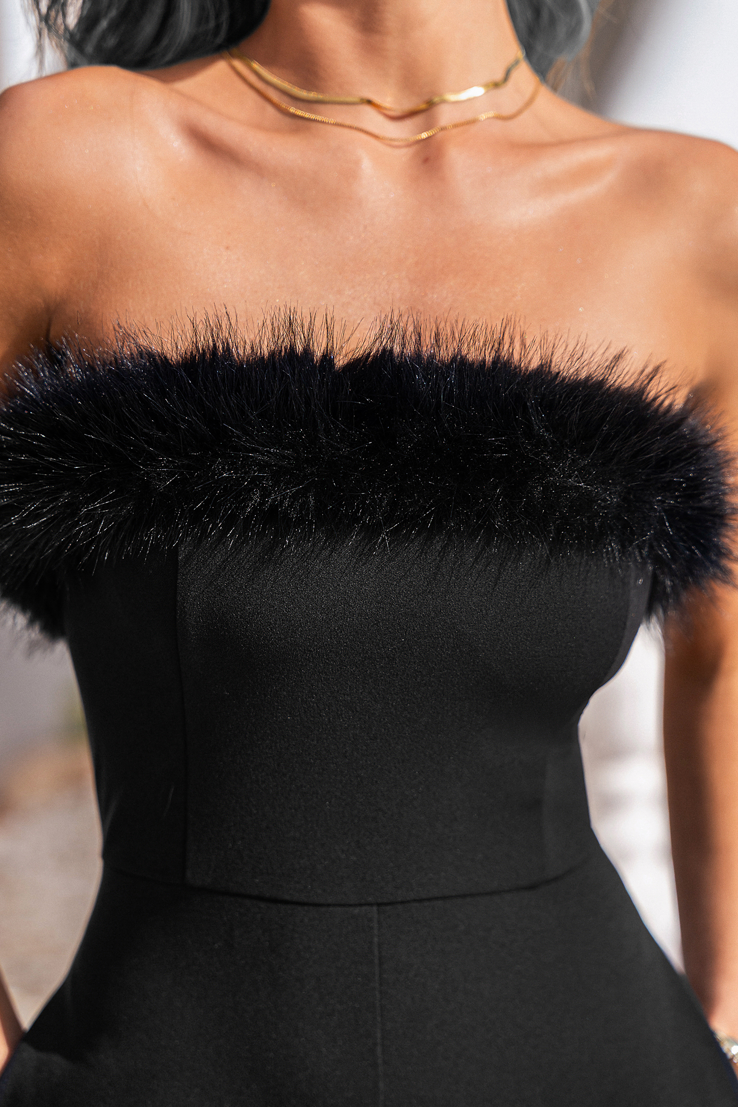 The Empress Black Jumpsuit is bold, dramatic, and made for making an entrance! The straight neckline, sleeveless cut, and faux fur trim lead into a straight-leg silhouette that’s effortlessly striking.