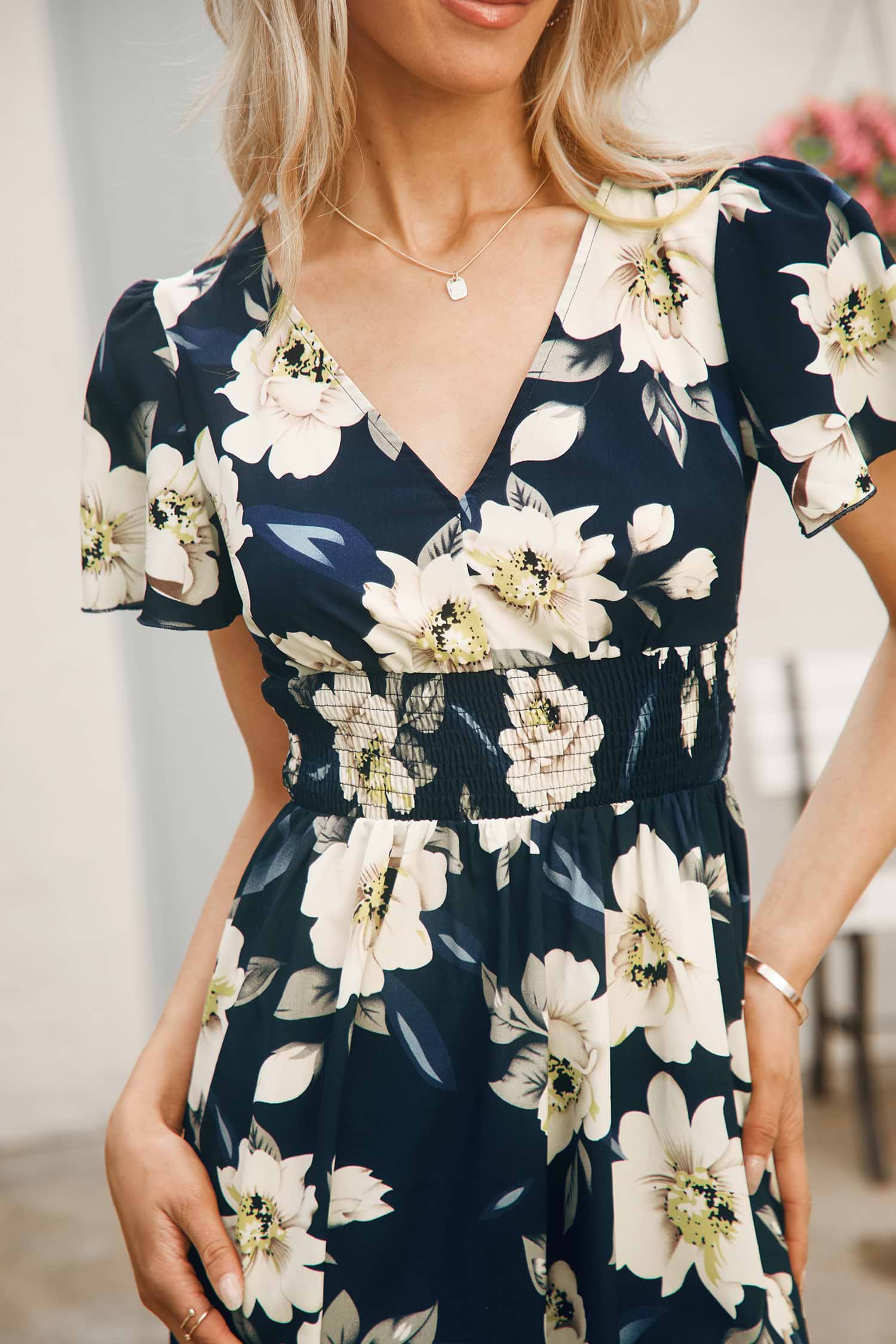 Blue Striped V-Neck Flutter Sleeve Mini Dress