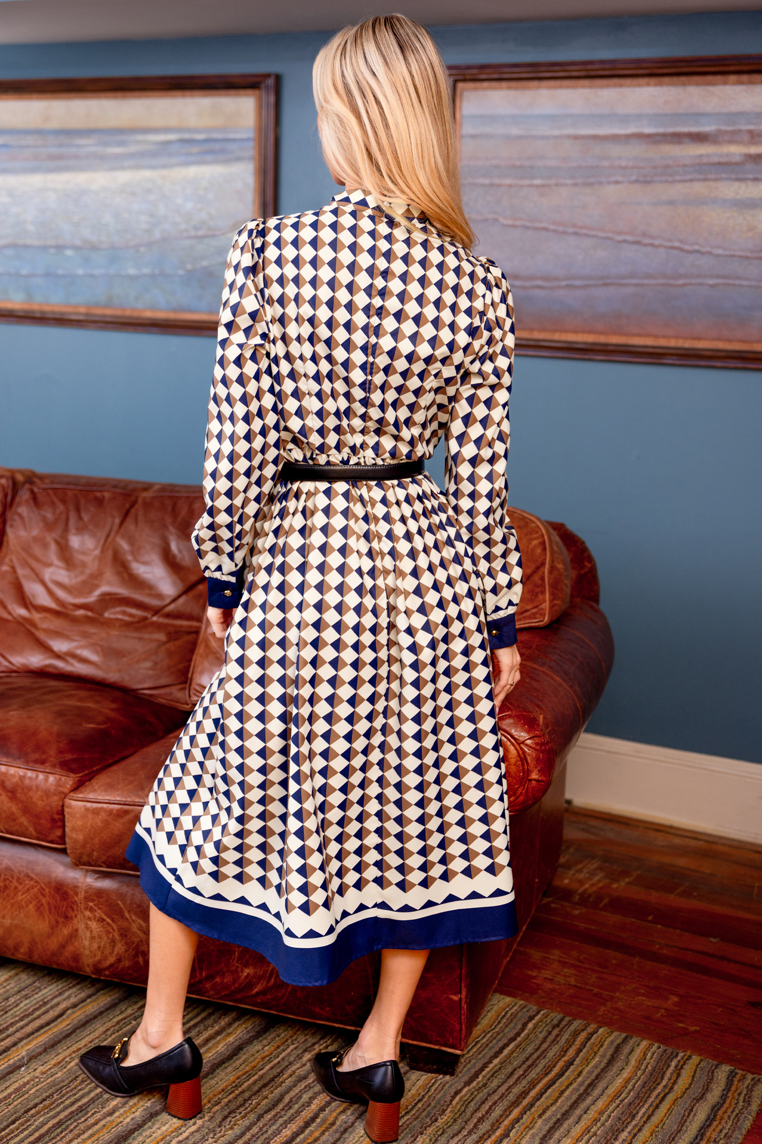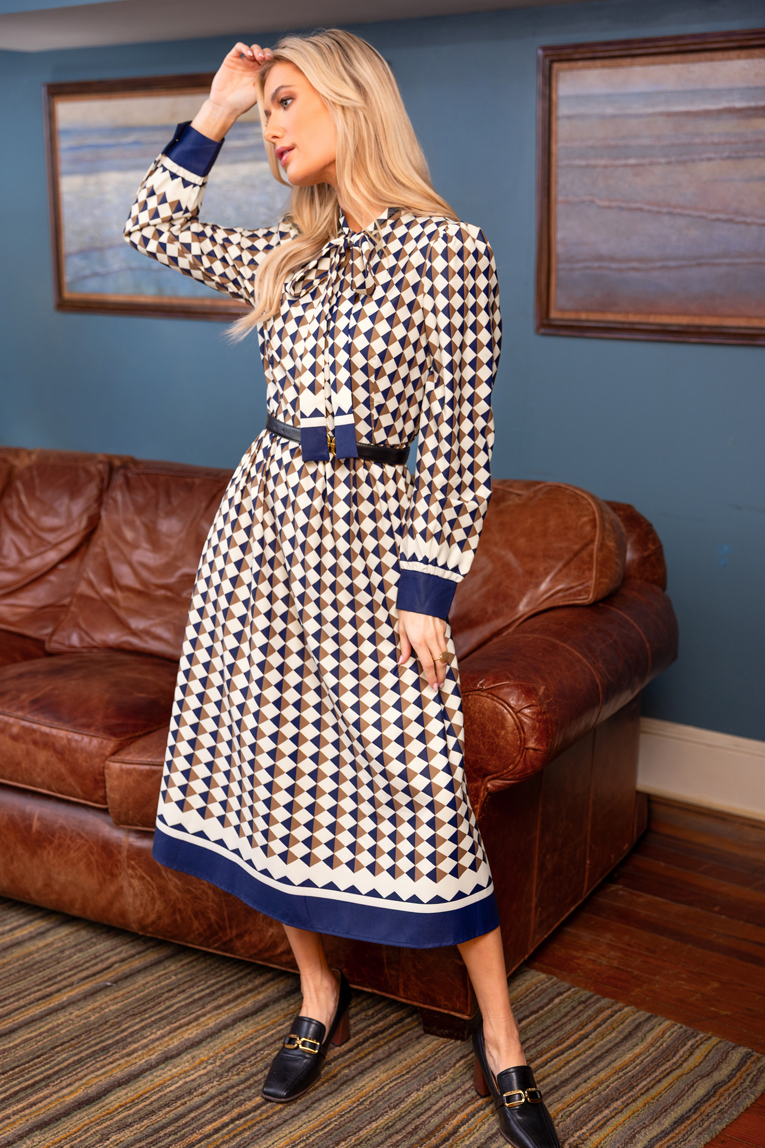 Stand out in the Exceptional Geo Maxi Dress! The high neckline, long sleeves, bow detail, and flowing maxi length bring a chic, polished energy to any occasion.