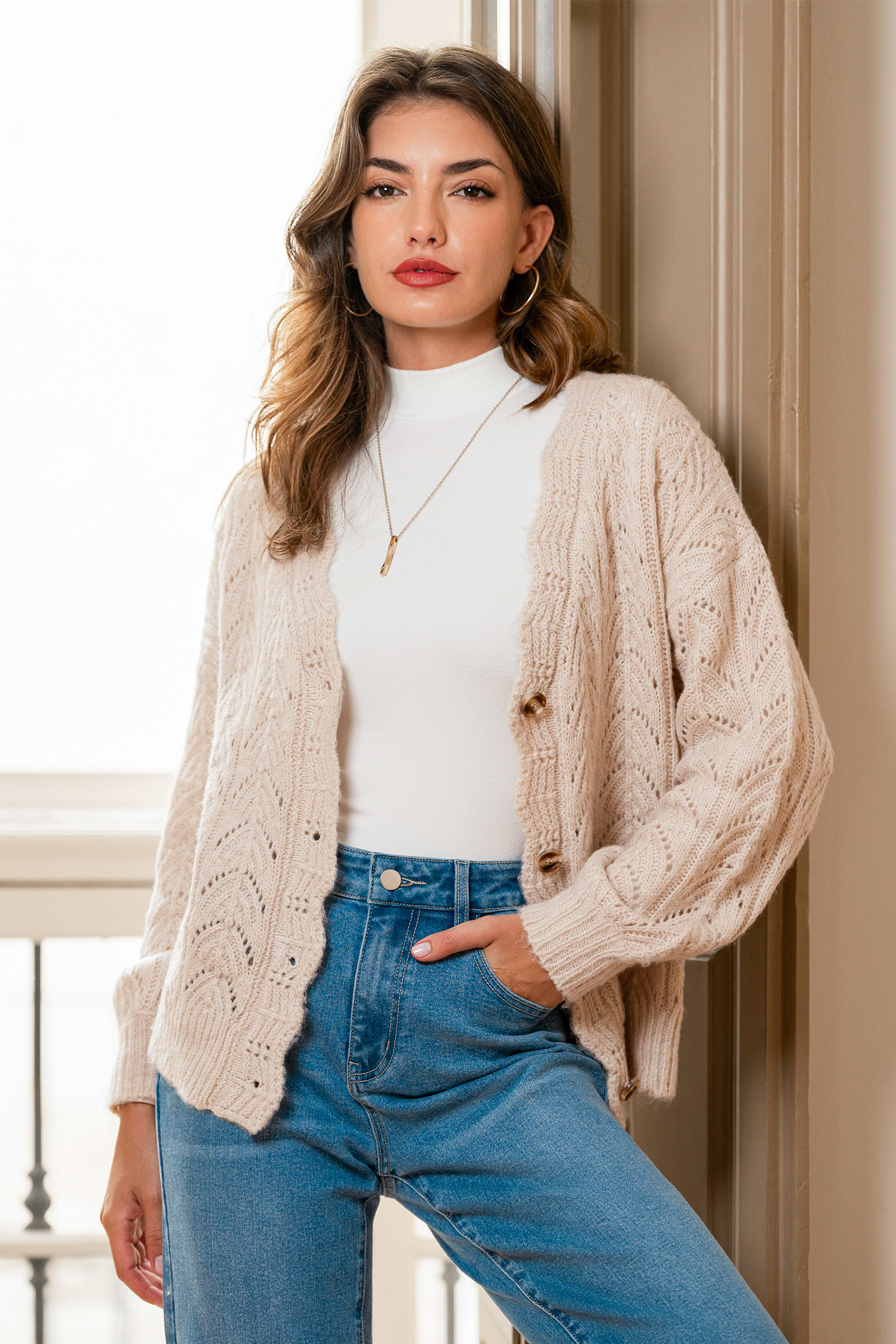 The Extra Cozy Beige Cardigan is your go-to for laid-back warmth! Its V-neckline, long sleeves, and soft knit make it perfect for layering over everything from tees to dresses.