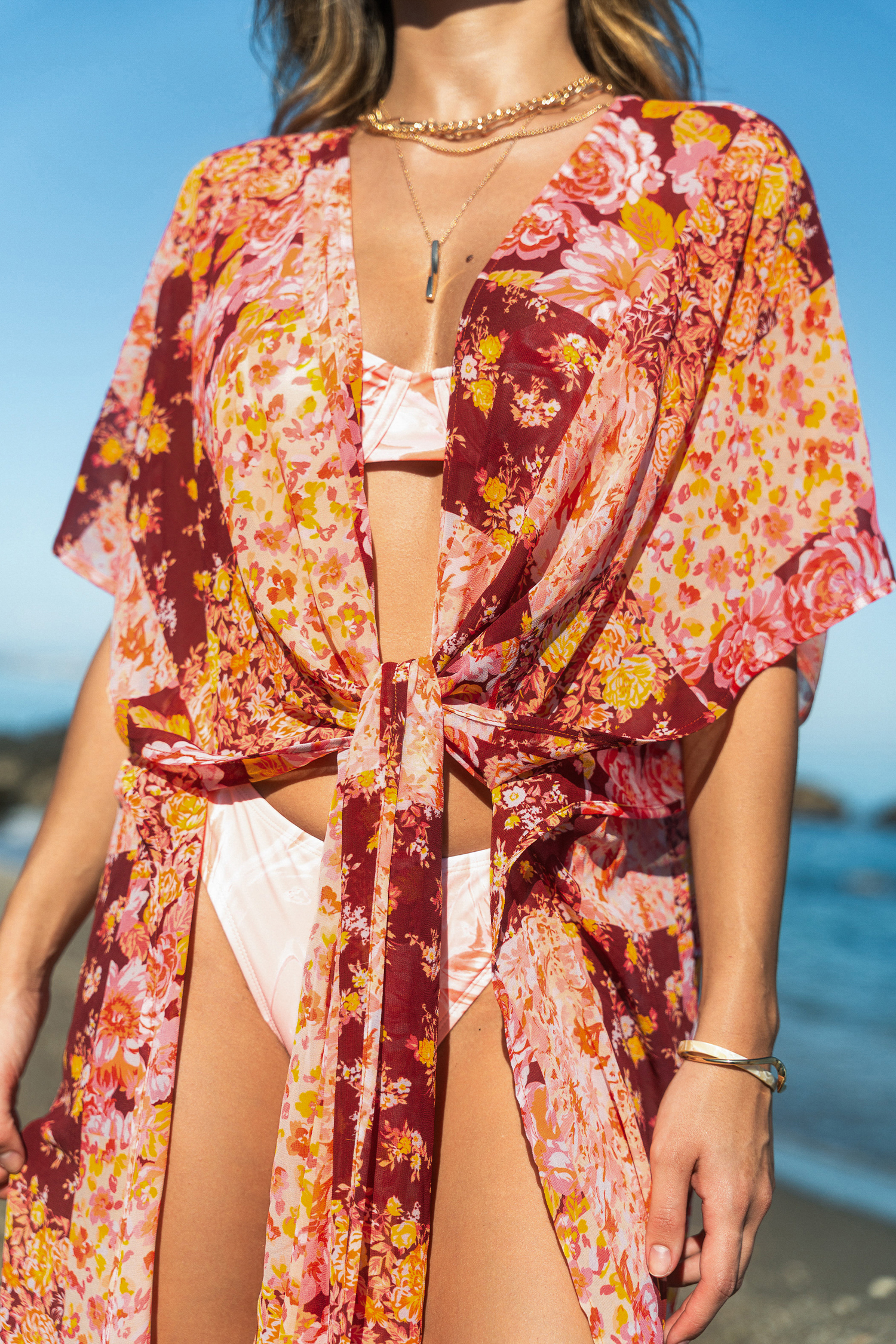 The Festival Bound Floral Cover-Up Kimono brings all the carefree energy! With floaty half sleeves, a breezy tie-front, and a lightweight feel, it’s the layer you'll be reaching for on every sunny escape.