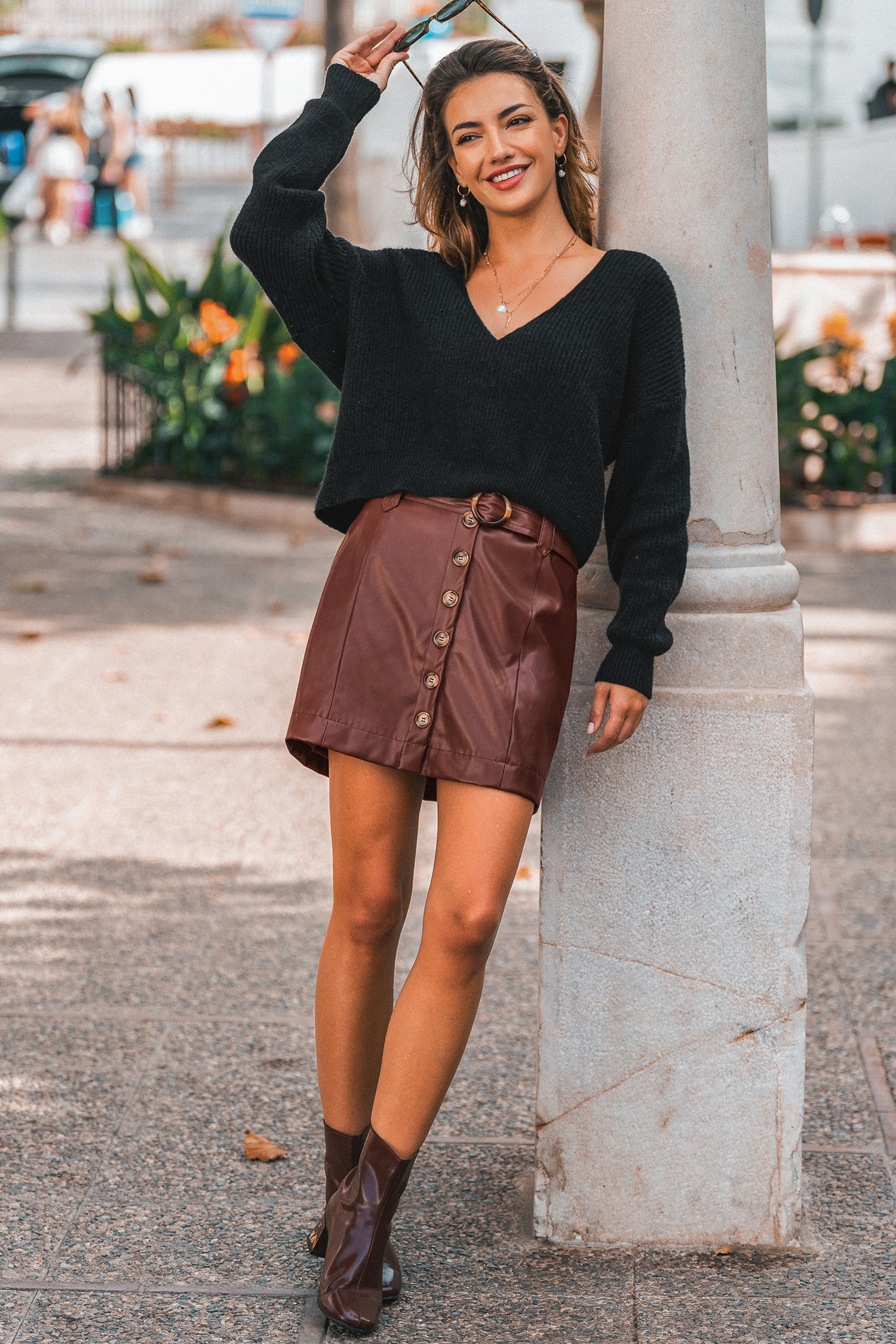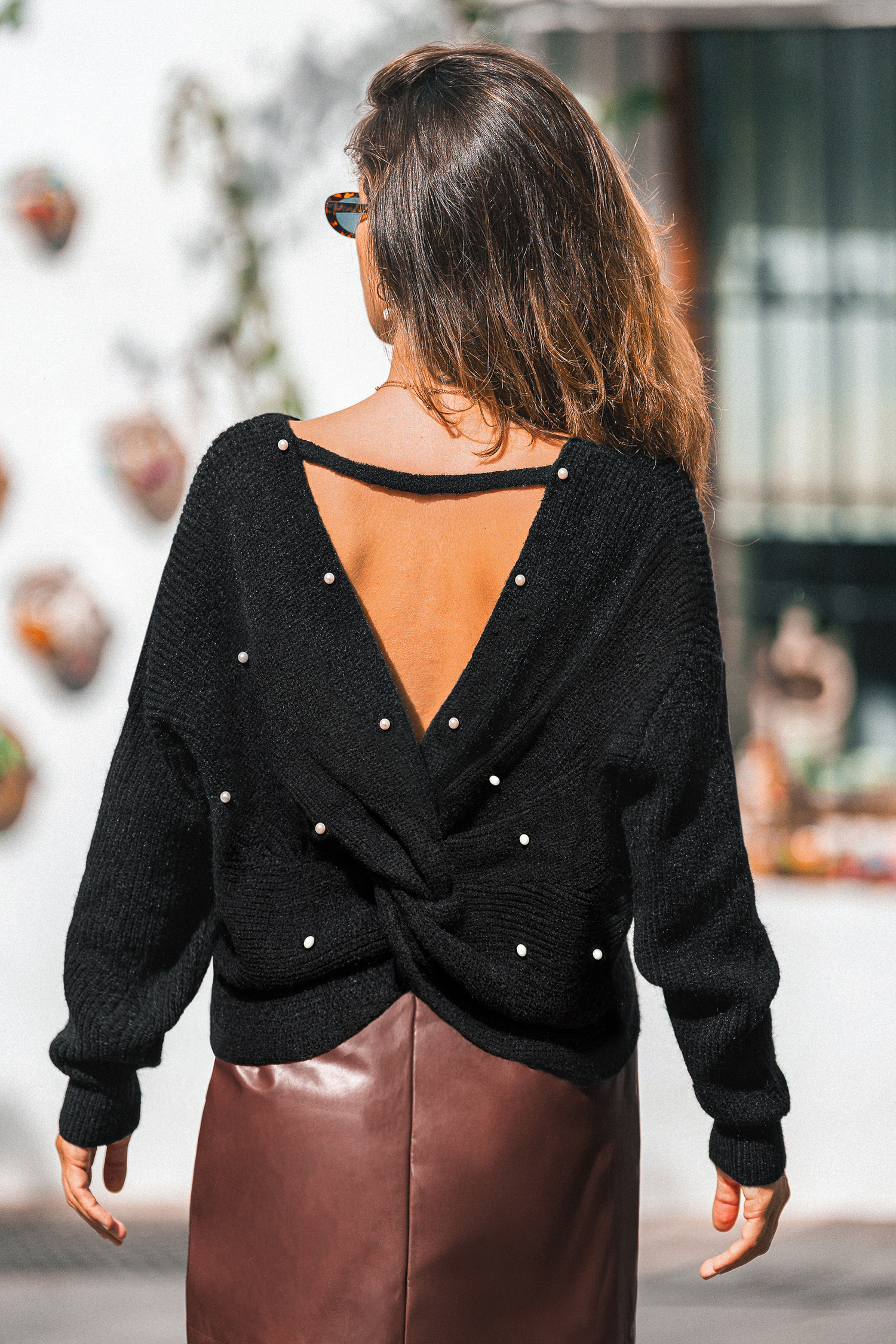The Finest Pearls Black Knit Jumper is flirty with a touch of elegance! Its V-neckline, long sleeves, and open-back detail add chic look.